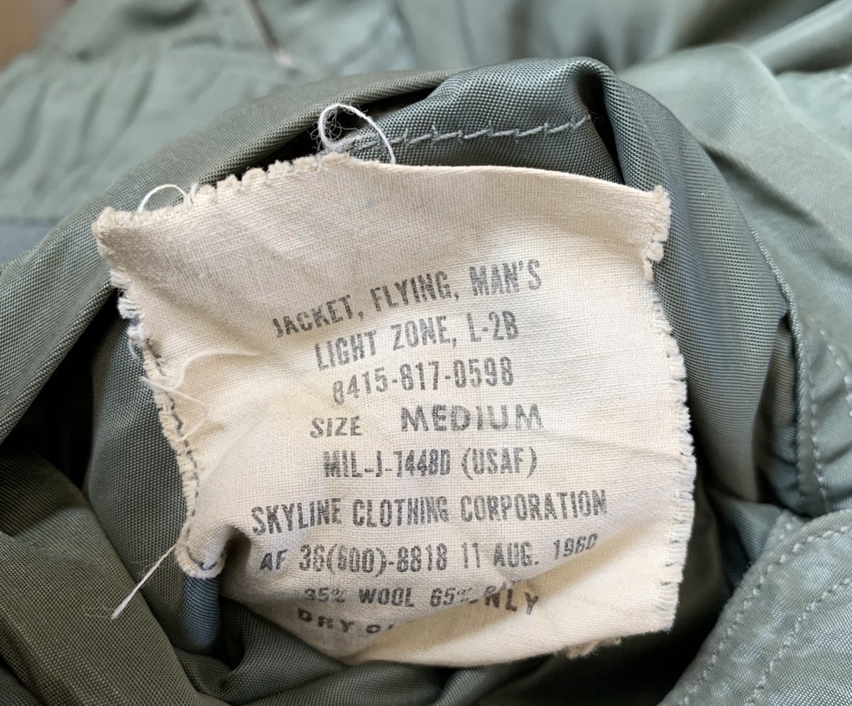 米軍 L-2B初期型 フライトジャケット 本物1960年官給品 サイズM アメリカ軍 空軍US AIR FORECEパイロット用 ヴィンテージ 希少品 4323A