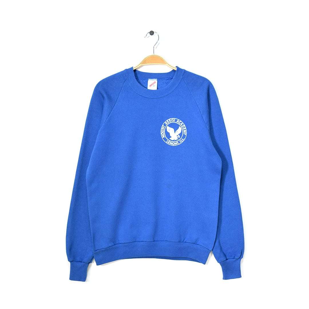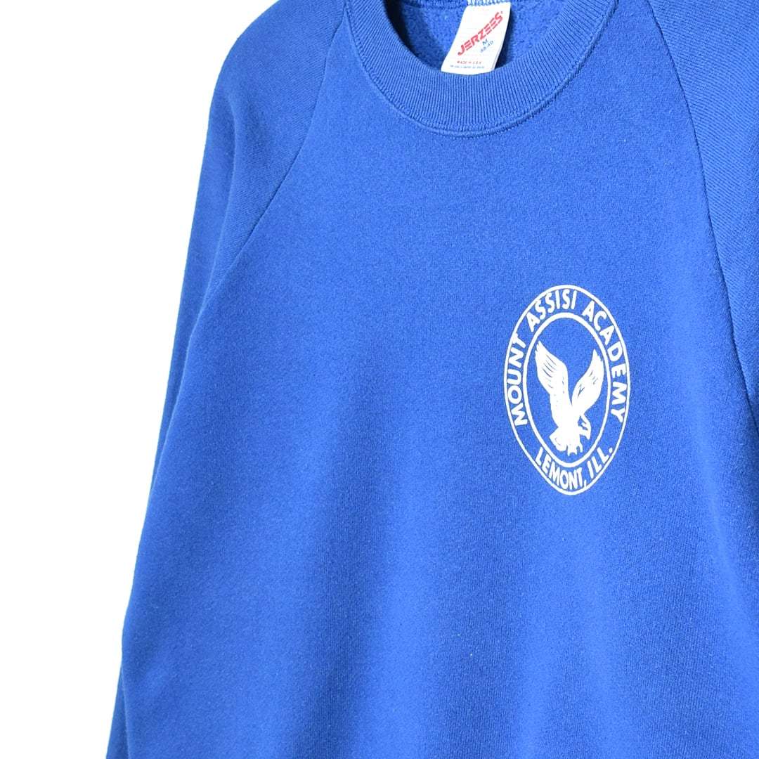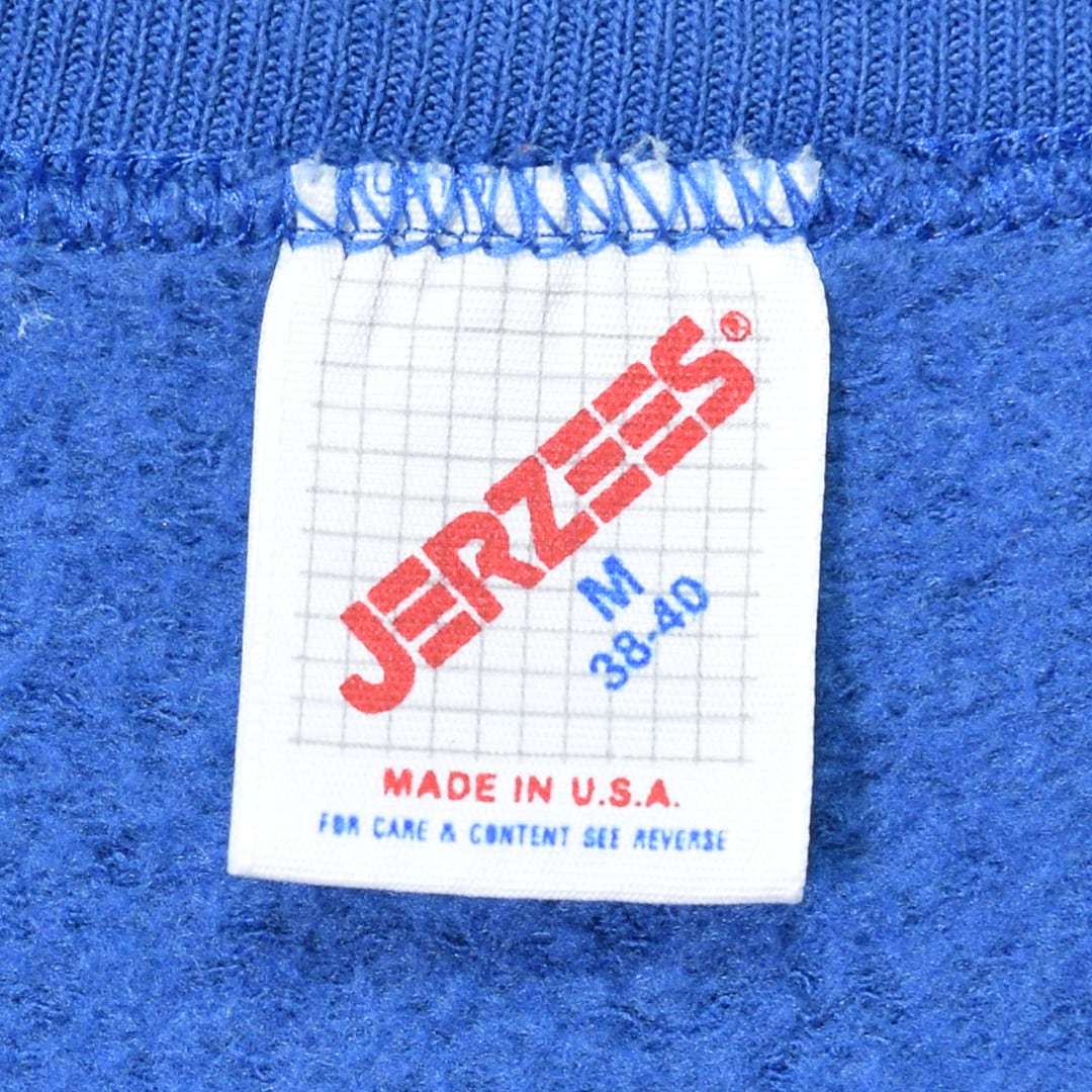 80s ジャージーズ USA製 ヴィンテージ スウェット カレッジプリント ワンポイント ブルー 青 トレーナー JERZEES メンズM アメカジ 古着 @CF0691