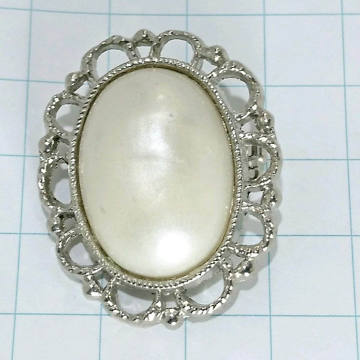 送料無料)ビンテージ☆パール 定番エンブレム☆アンティーク ブローチ A20709