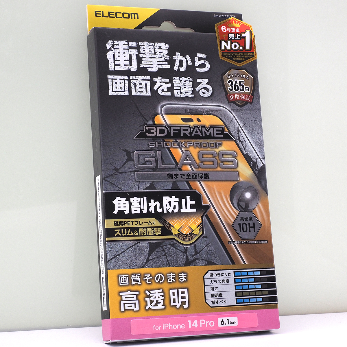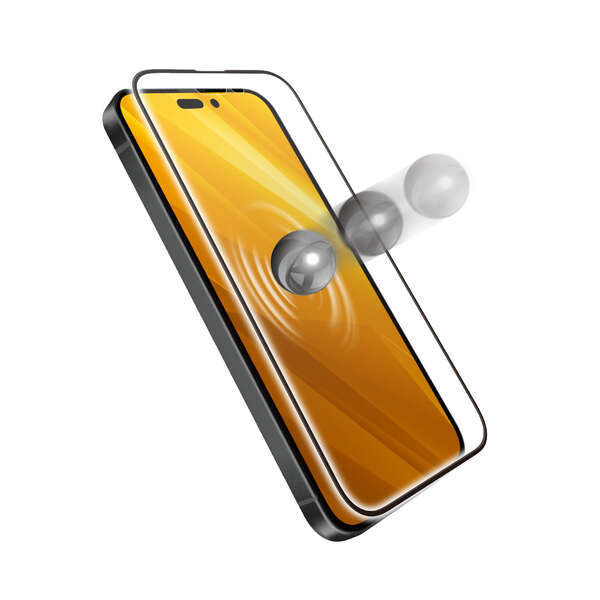 ・特殊な衝撃吸収層を採用し、衝撃から画面を守る。3D設計のPETフレーム付きで角割れを防ぐiPhone 14 Pro用液晶保護ガラスです
