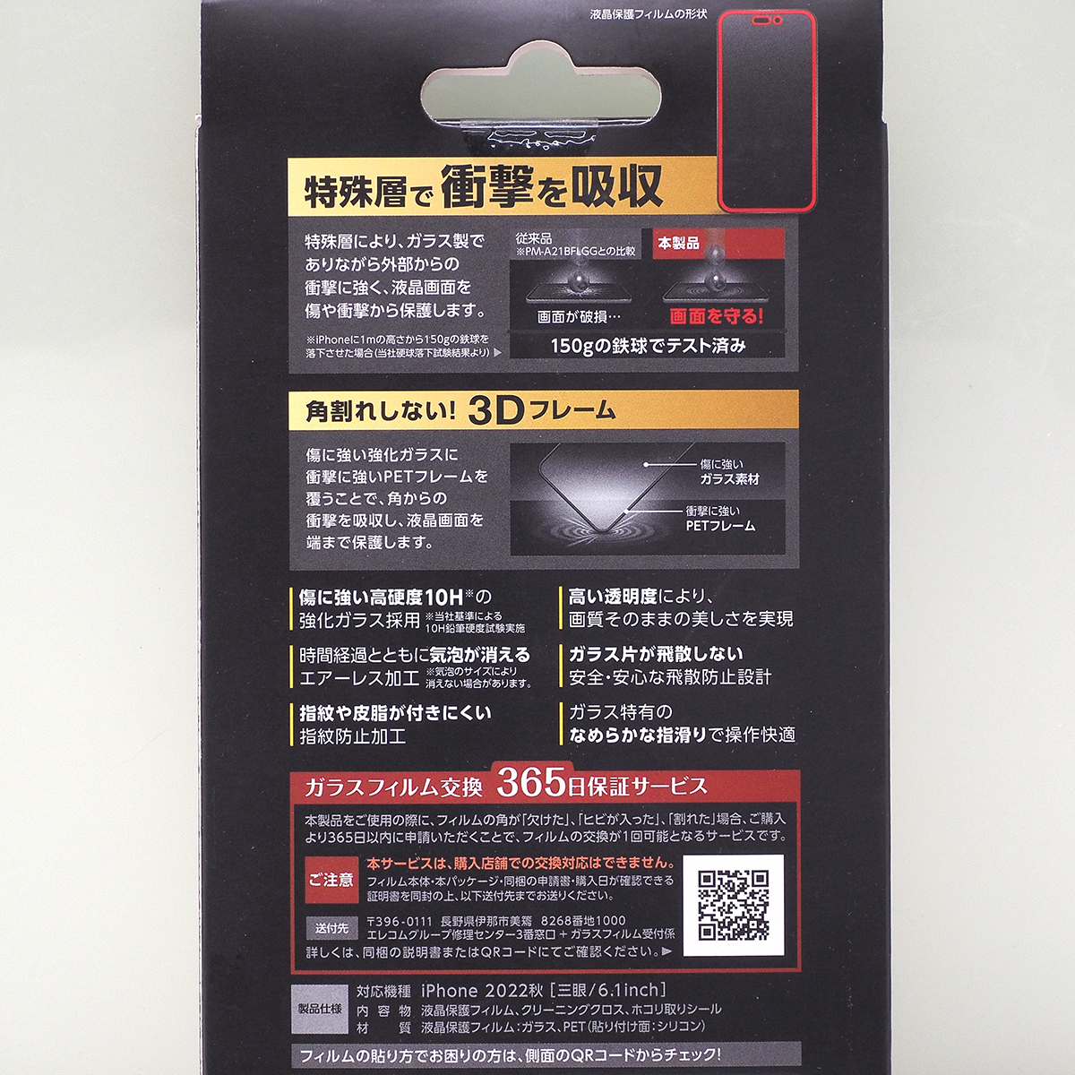 Apple iPhone 14 Pro (3眼・6.1インチ) 用 高透明 耐衝撃 ガラスフィルム スリム 3Dフレーム 液晶保護フィルム の未開封保管品になります。