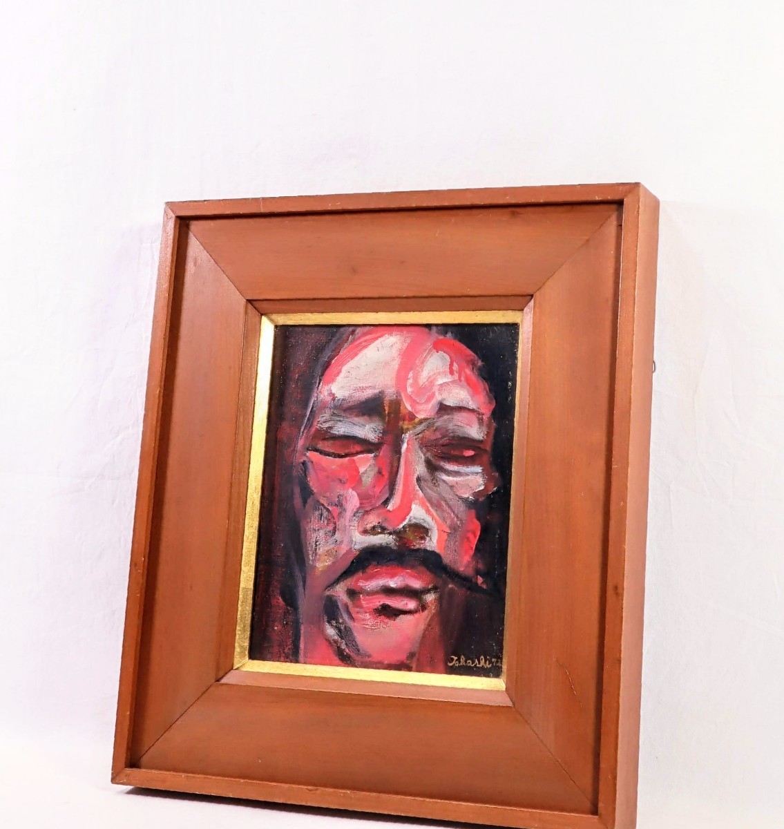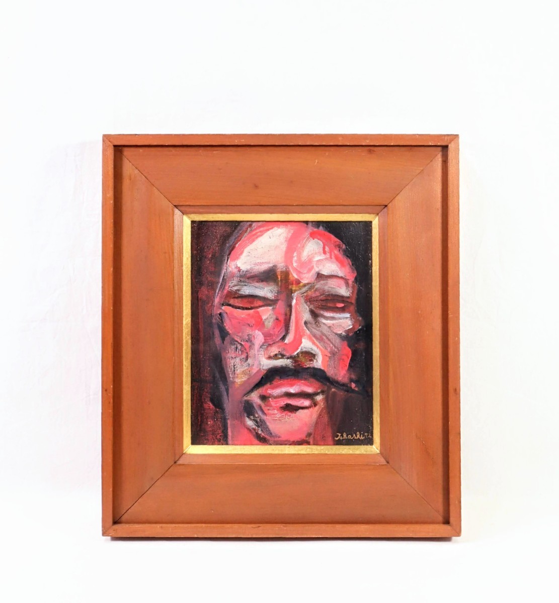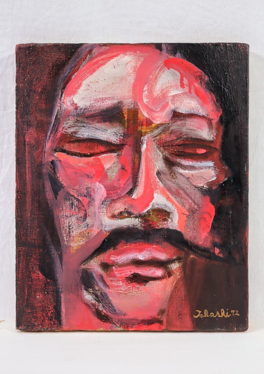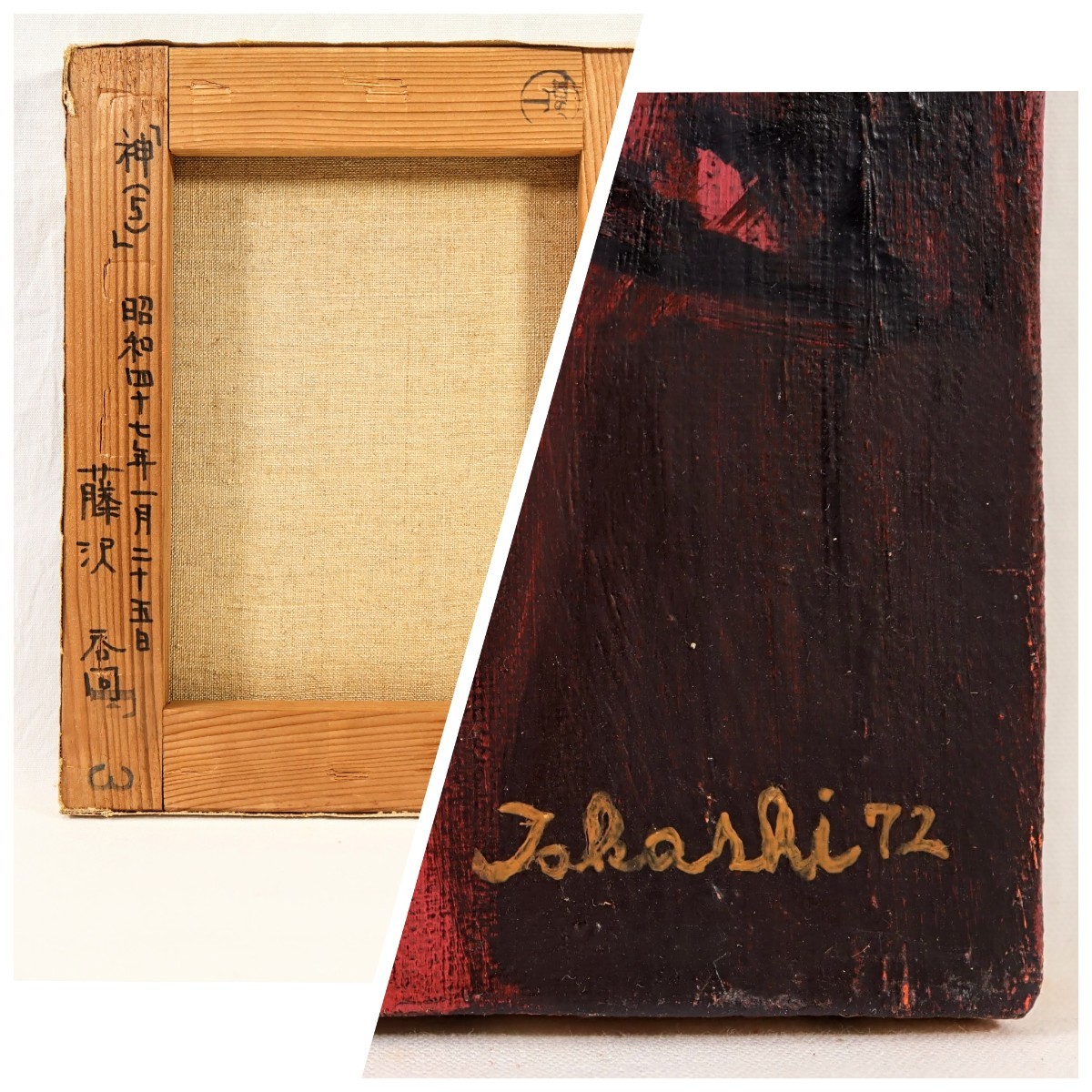 真作 藤沢喬 1972年 油彩「神 (5)」画寸 F3 中国大連出身 自由美術家協会会員 黒と赤を基調に力強い筆致でインパクトあるキリスト 8155