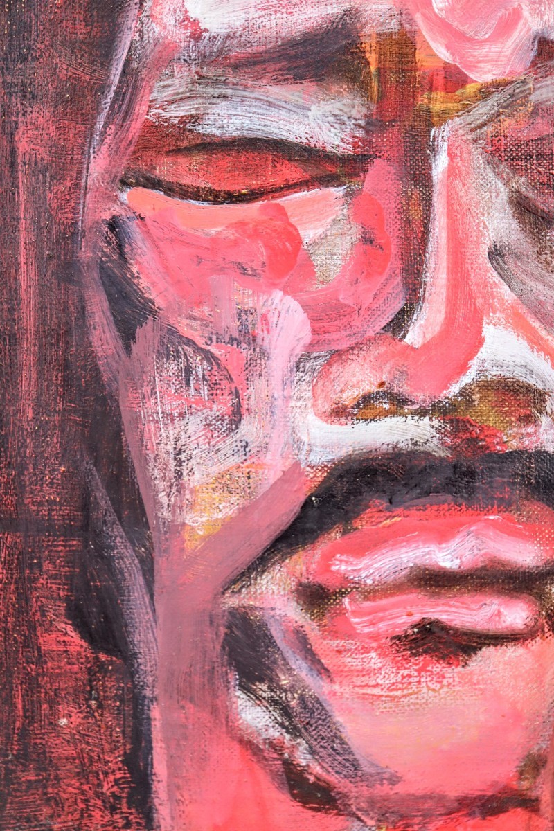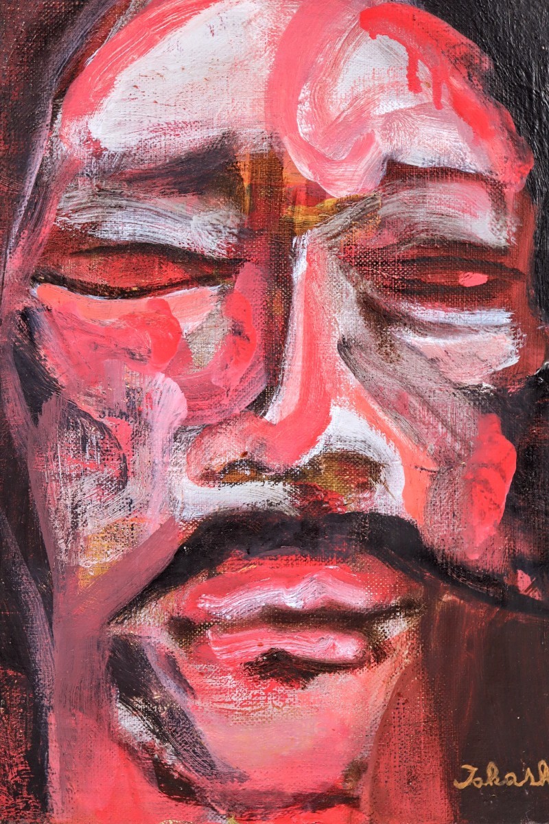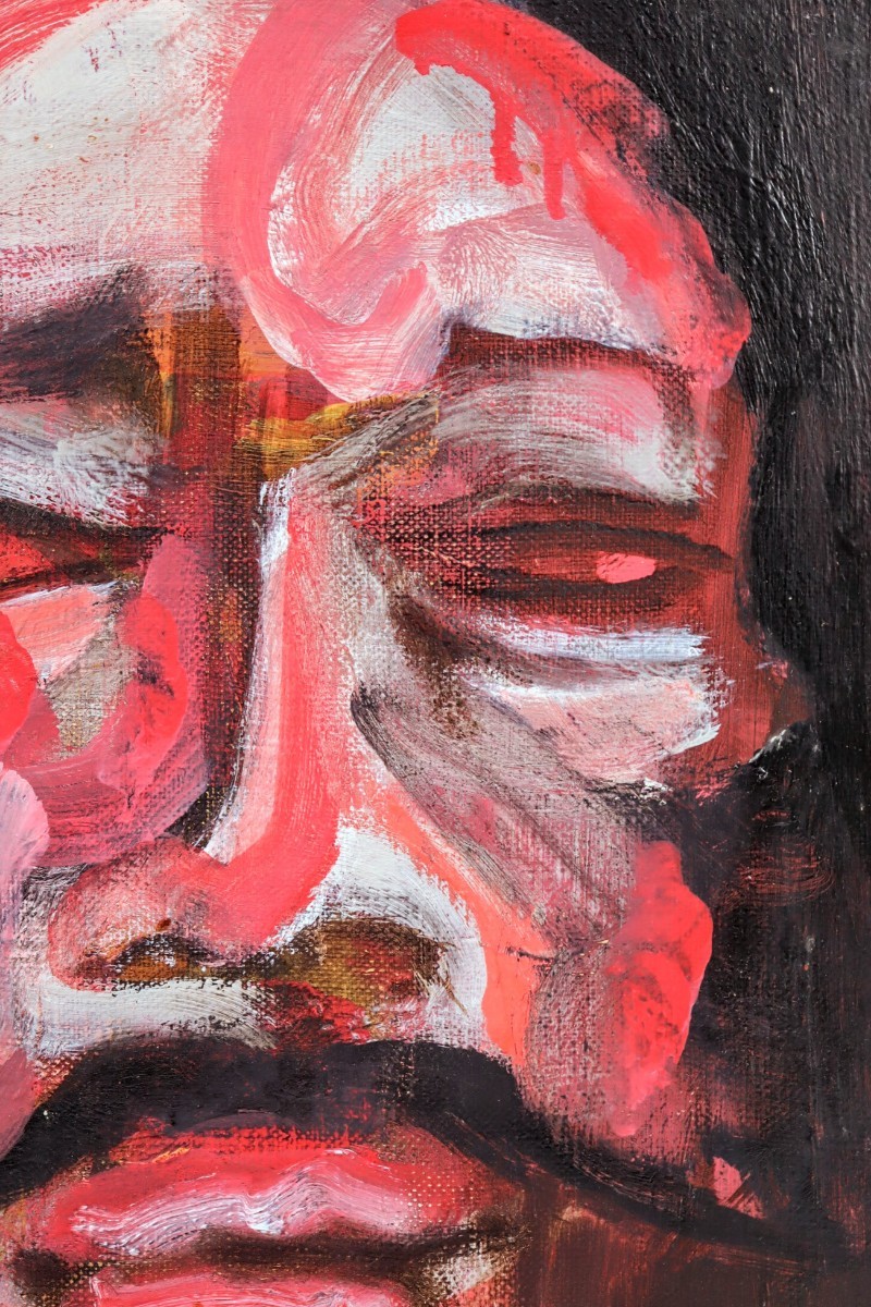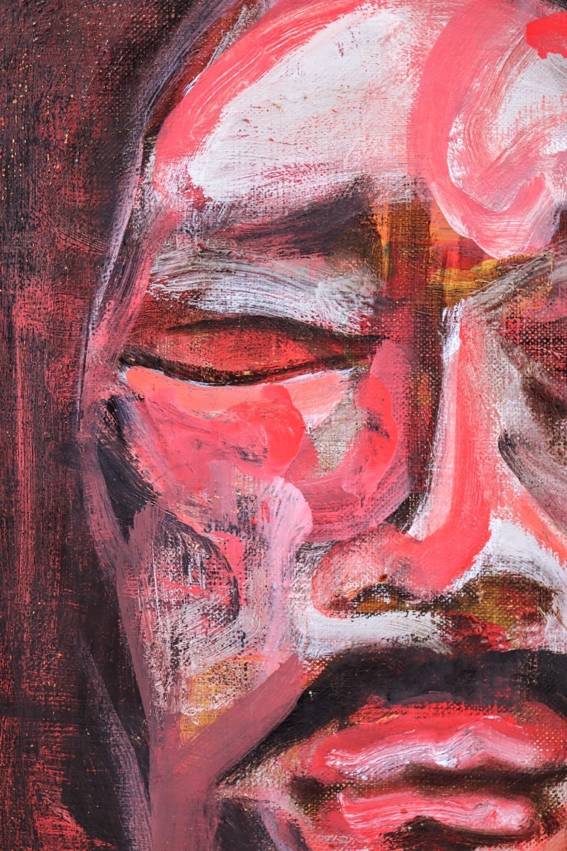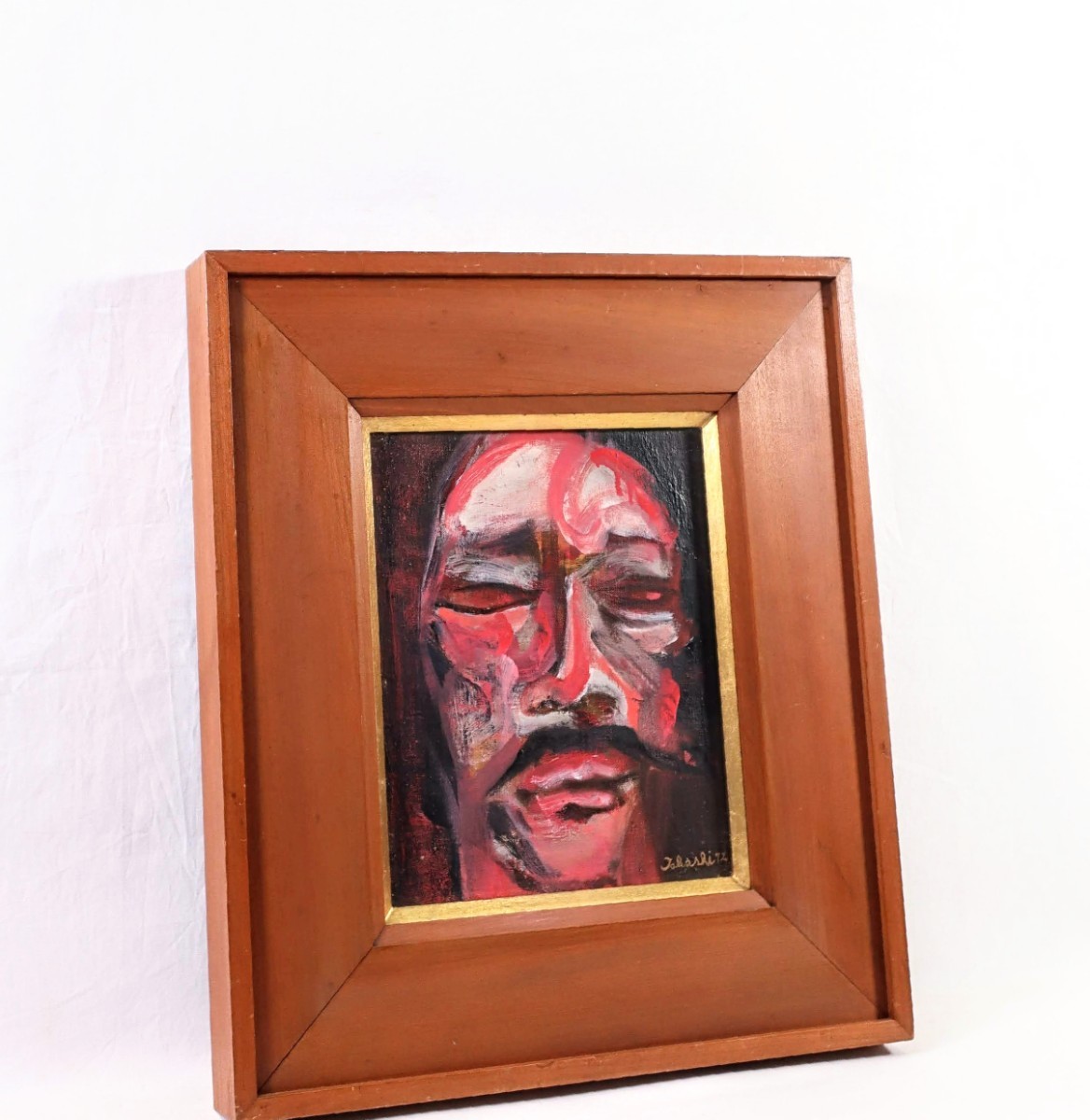 真作 藤沢喬 1972年 油彩「神 (5)」画寸 F3 中国大連出身 自由美術家協会会員 黒と赤を基調に力強い筆致でインパクトあるキリスト 8155