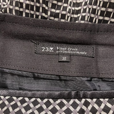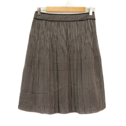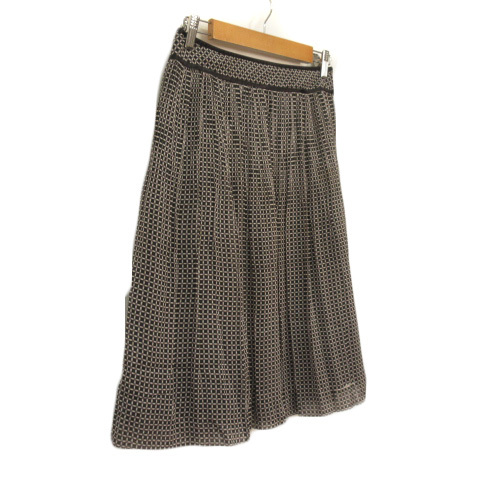 23区 オンワード樫山 スカート プリーツ チェック シフォン 38 黒 ブラック レディース