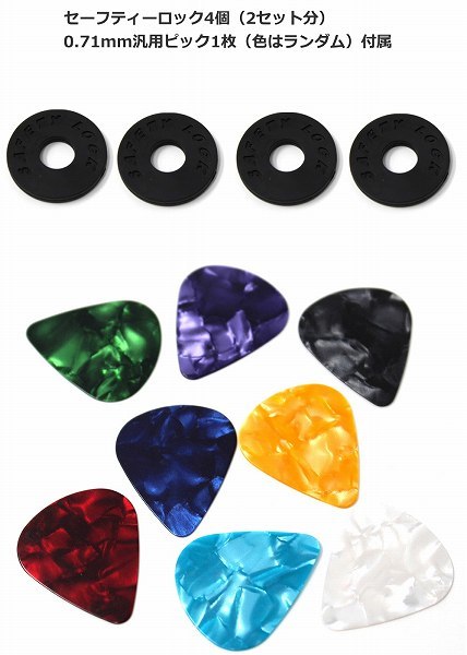 ・さらにブロックロック2対(4枚)付属!ストラップの上からはめ込むだけでストラップの脱落を防ぎます。ソフトなシリコンゴムなのでギターへのダメージもありません。ゴムが劣化してもスペアがあるので安心です。