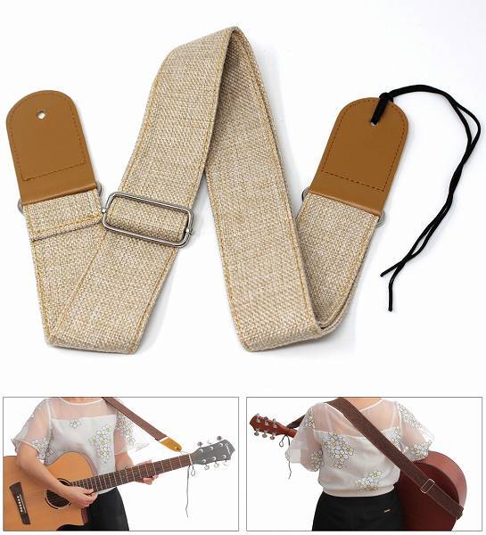 ギターストラップ コットンリネン +ストラップロック 4枚 + ピック 3種6点 セット (ベージュ)