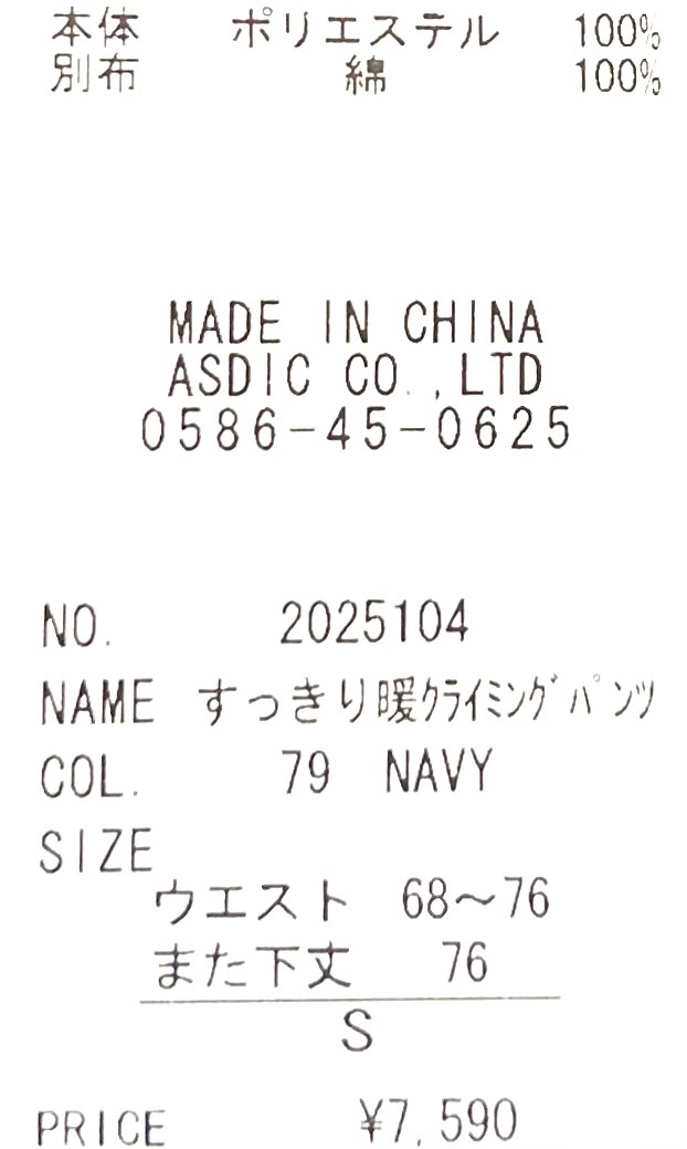 【新品】KRIFF MAYER フリース クライミング パンツ(S)ネイビー クリフメイヤー タイト ナロー 細身 厚手 キャンプ ロンパン