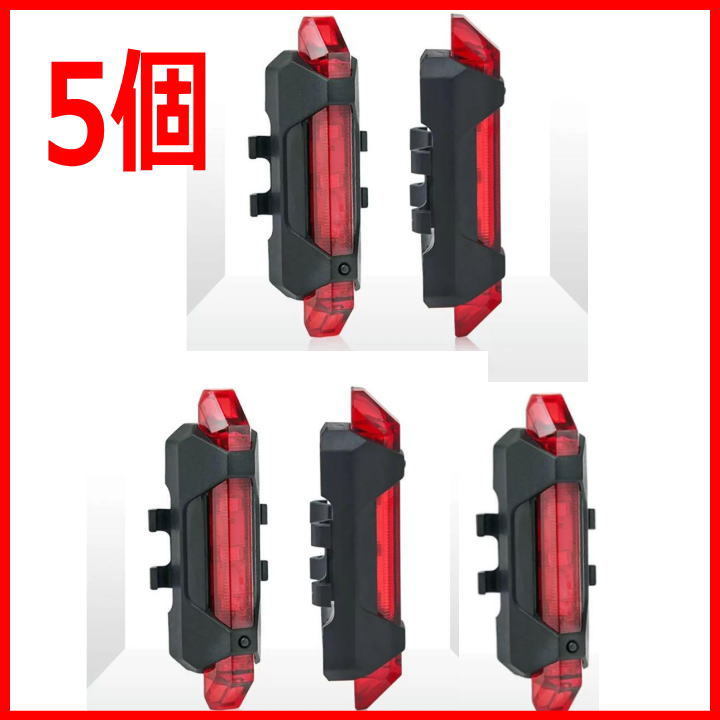 自転車用ライト USB充電式LEDテールライトテールランプ【5個】簡易防水 耐水 雨
