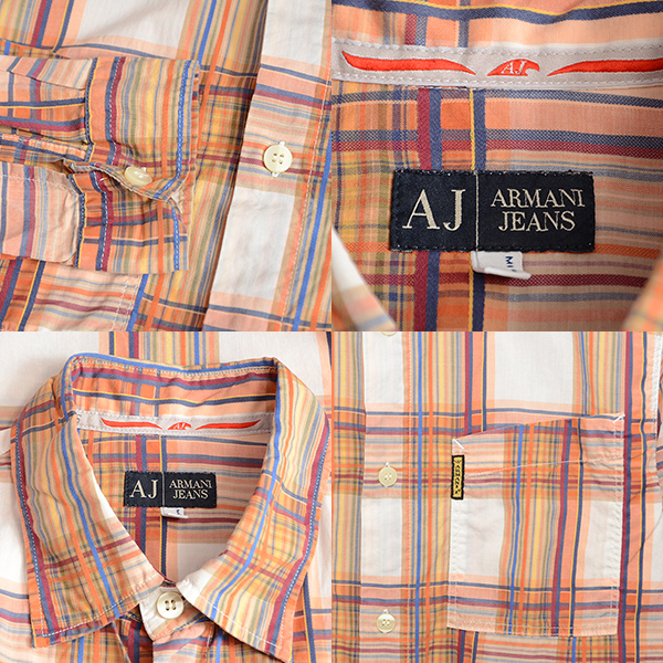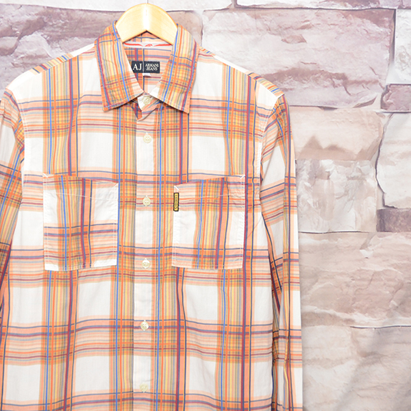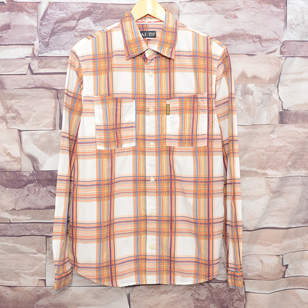 AS5564 アルマーニ ジーンズ ARMANI JEANS 長袖シャツ M 肩44 格子柄 メール便 xq