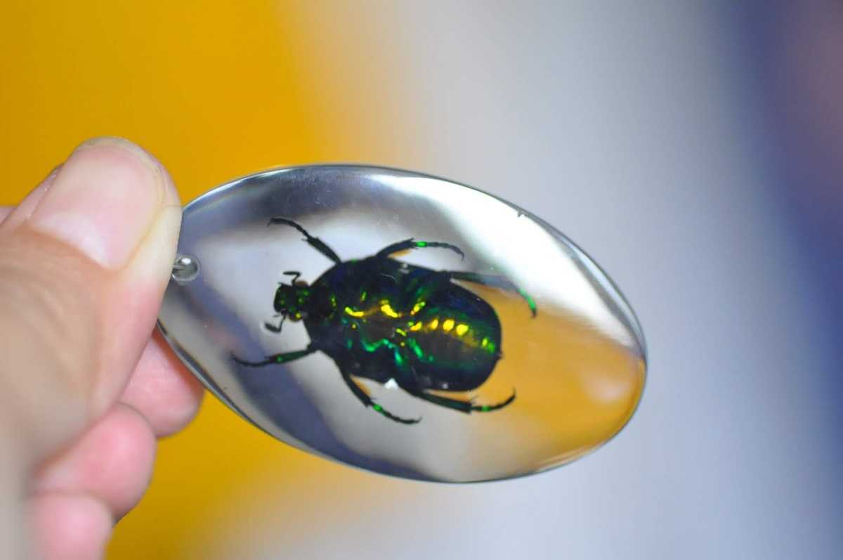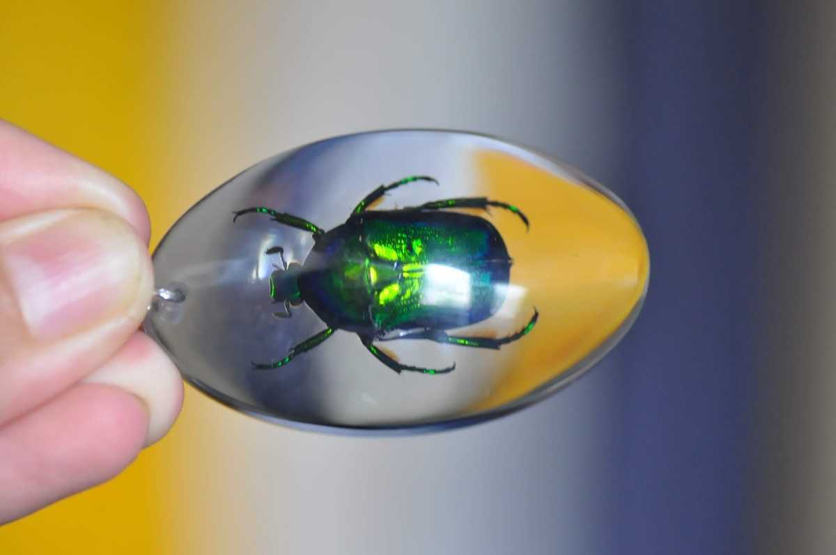 体の色は緑を中心に様々な色に変化して見える非常に美しい「構造色」として知られています。