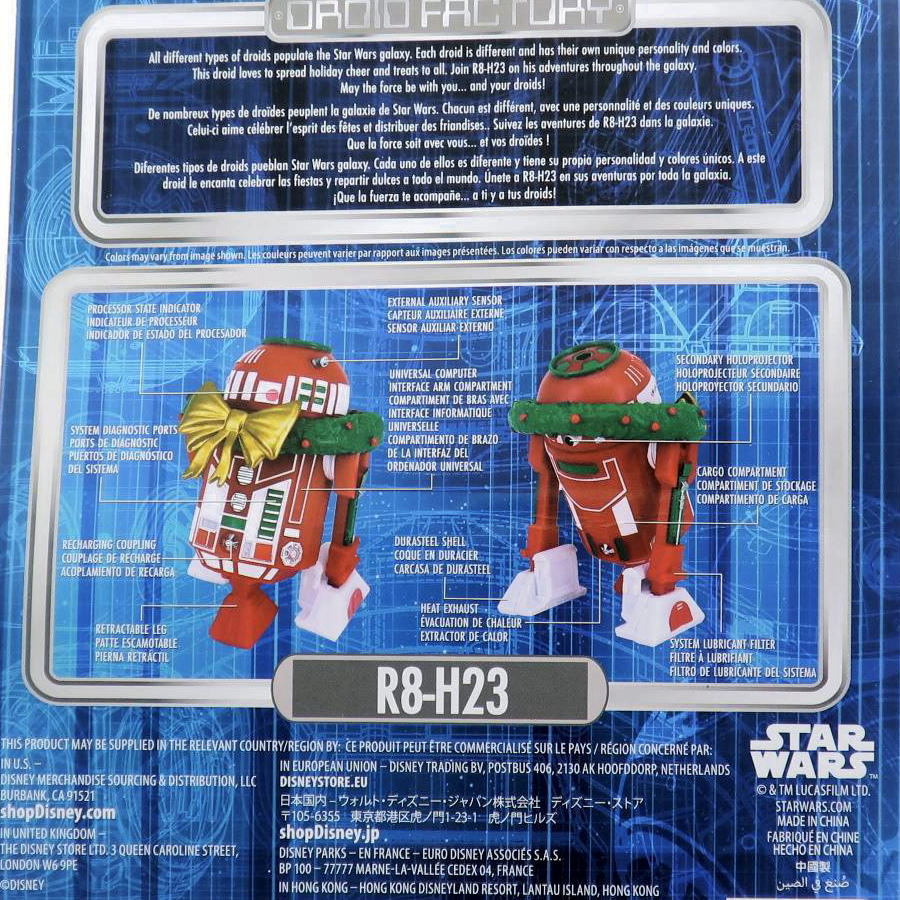 | 商品説明 | R8-H23 フィギュア 2023クリスマスモデル スターウォーズ 2023年 USAテーマパーク(DL/WDW) ブラスチック製 フィギュア:約高6.5cm パッケージ:22.7×15.1×4.3cm 新品 パッケージにアメリカよりの運送中に他の商品に押されてできました台紙のソレと折れあとがあります。 |