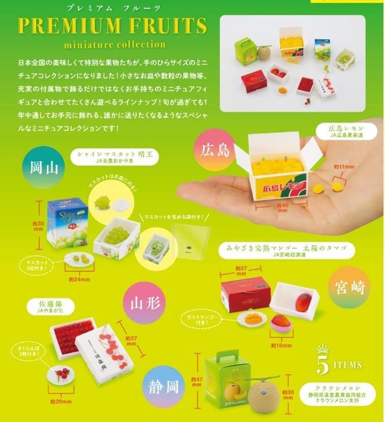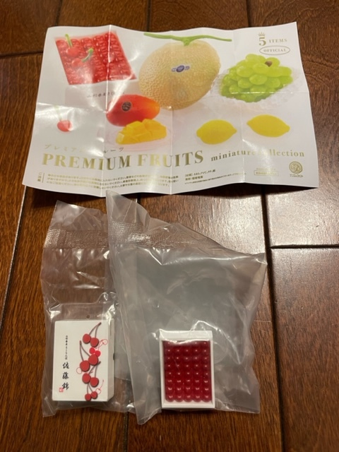 ケンエレファントが手掛けたプレミアムフルーツミニチュアコレクション全5種のうち「佐藤錦(JAやまがた)」になります。細部まで大変精巧に作られており、フルーツ好きの方には垂涎もののミニフィギュア間違いなしです。フィギュアだけでなく包装箱まで精緻に造形されていて感動ものです。勿論内袋未開封、リスト付きです。