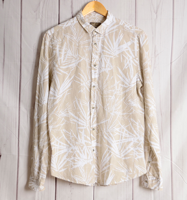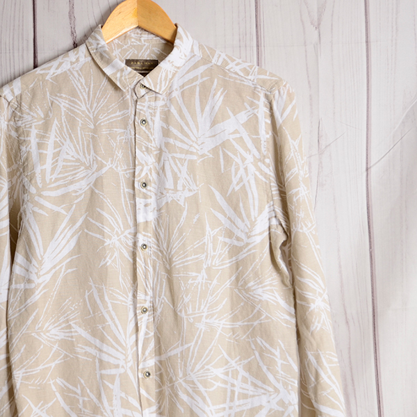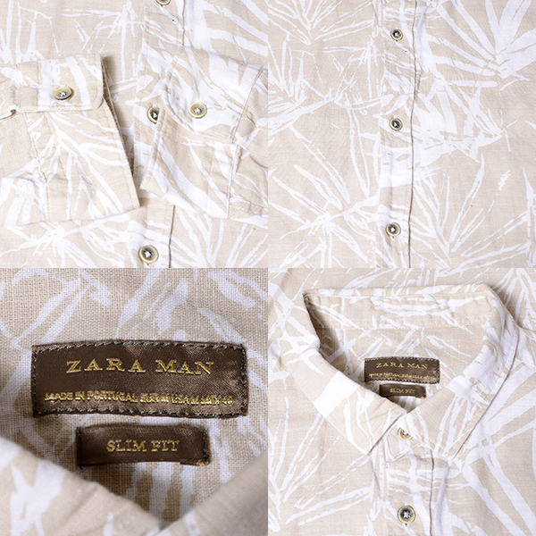 AS5921 ザラ ZARA 長袖シャツ M 肩47 総柄 SLIM FIT メール便 xq