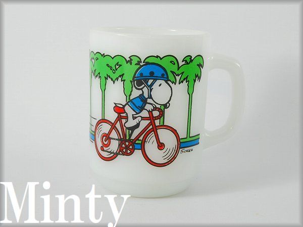 ■商品説明★★★(頑張って探さないと見つかりません。) ファイヤーキング FireKing スヌーピーマグ「ペダルパワー」 です。 4種類あるスポーツシリーズのひとつです。 ■コンディション:★★★★☆【エクセレント~ニアミント】 |
