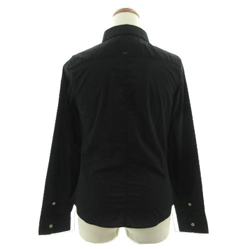 ジースターロウ G-Star RAW シャツ ロゴ刺繍 長袖 タイト ストレッチ コットン混 シンプル ブラック 黒 XS レディース
