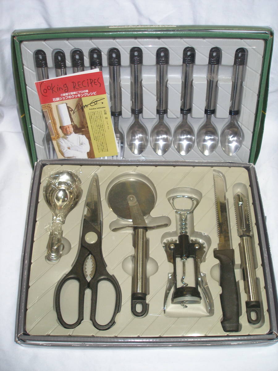 料理の名誉鉄人石鍋裕監修 料理道具6点セット+スプーン&ホォーク10本セットの2点セット未使用の倉庫保管品です。