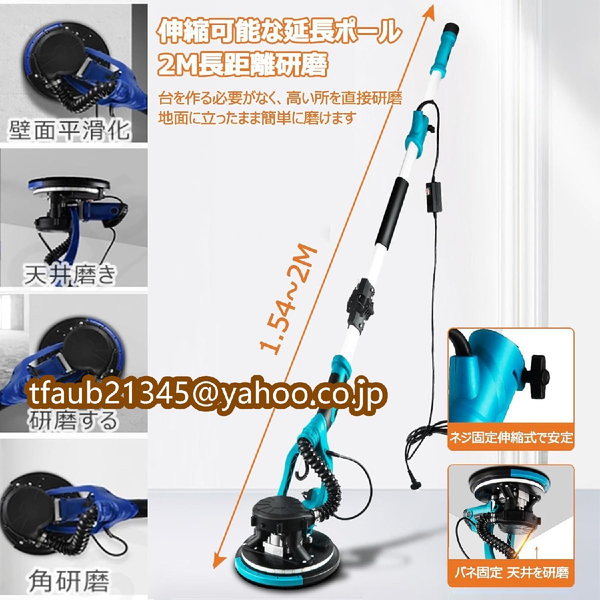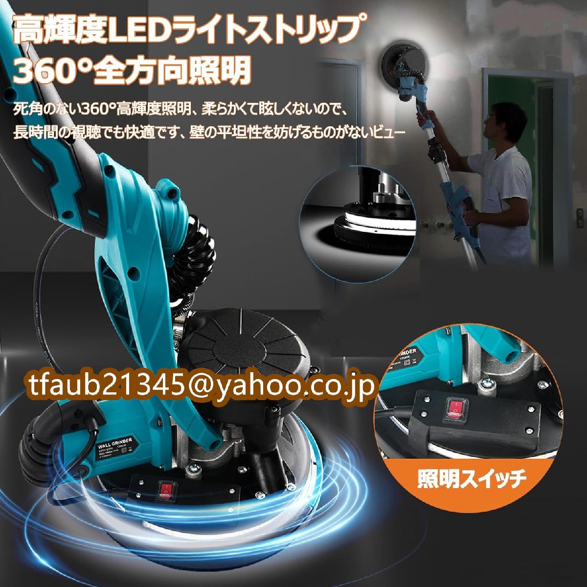 2 電気ドライウォールサンダー 折りたたみ式 110V 1250W 電気乾式壁サンダー 電動サンダー 800-1800RPM6段階変速 LEDライト 自動掃除機付き