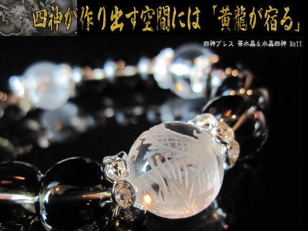 天然石 パワーストーン ブレスレット 茶水晶 水晶 四神 パワーブレス 風水 運気上昇 黄龍 四神獣 No11