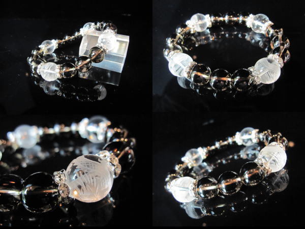 四神ブレス 茶水晶12mm&水晶四神14mm No11
