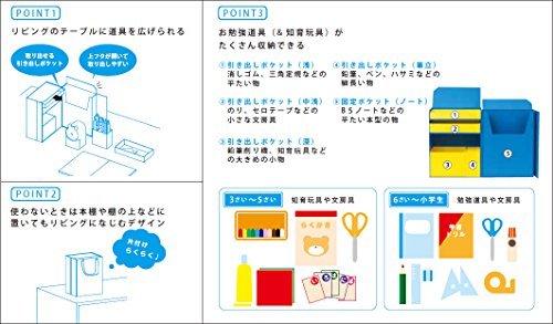 収納カバン・ブルー 91241・・Color:ブルーStyle:収納カバン・本体寸法:W210×D165×H270mm(収納時、取っ手含む)、W422×D105×H270mm(展開時)・本体重量:1070g・材質:本体/紙、MDF、ネオジム磁石、スチール、取っ手/PU、鋲/スチール・紙POP+OPPフィルムキャラメル包装・リビングのテーブルに道具を広げられて、使わないときは本棚や棚の上などに置いてもリビングになじむデザイン●リビングテーブルで学習するこどものためのツール ●リビングのテーブルに道具を広げられます ●使わないときは本棚や棚の上などに置いてもリビングになじむデザイン ●お勉強道具( & 知育玩具)がたくさん収納できます