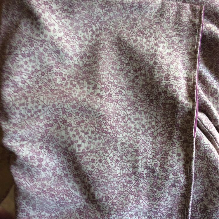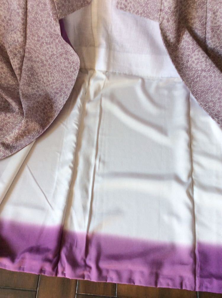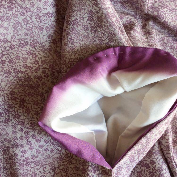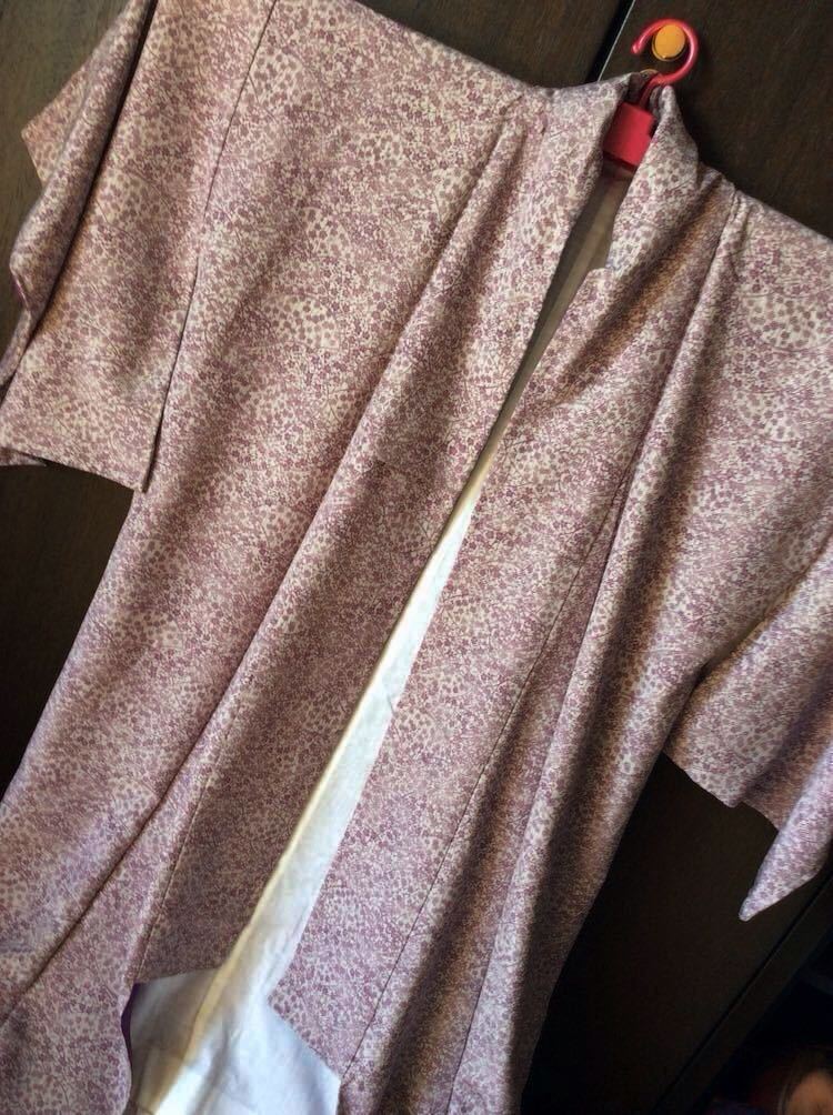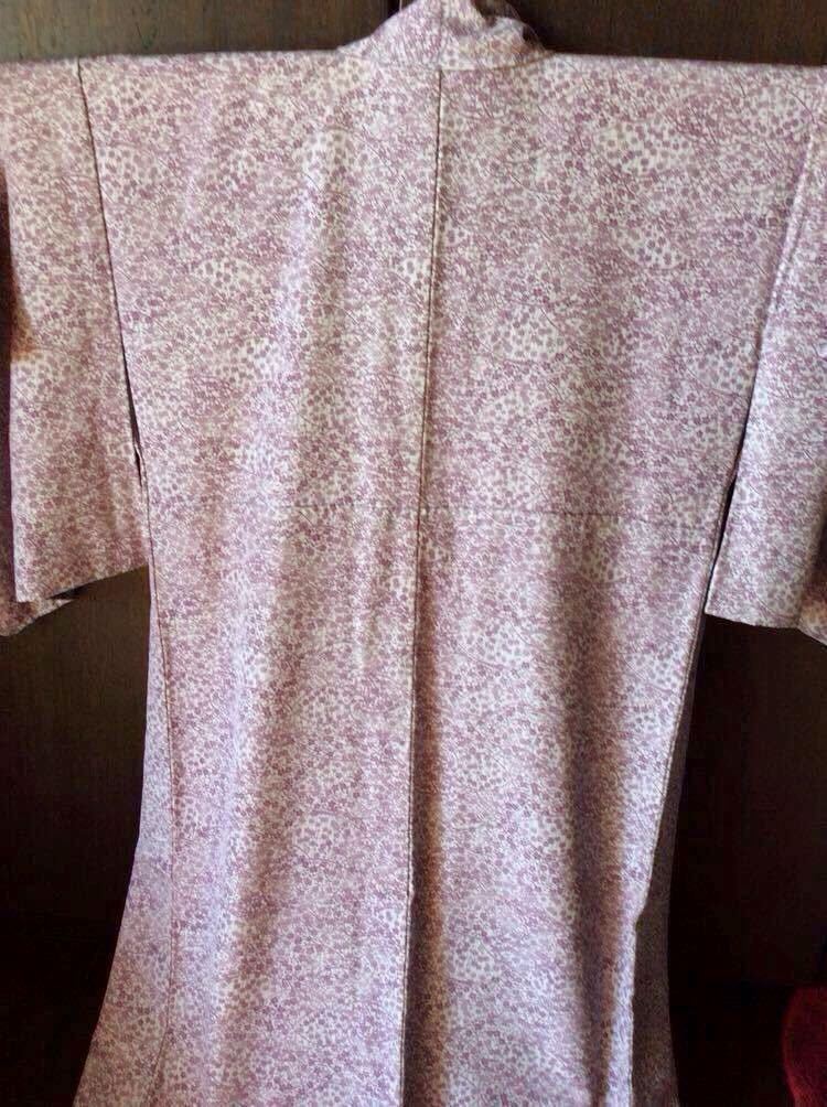 出入りの呉服屋で誂えた正絹の小紋です♪ちりめん生地だと思うのですが、違ったら申し訳ありません。素敵な極々薄の暗めの紫色生地に、暗めの薄紫色の小花模様が素敵で大変上品です♪