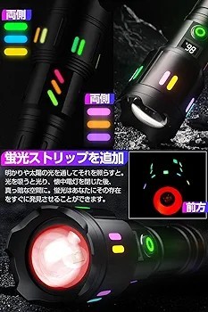 【独自の夜光効果の設計& 進化版高輝度】光コップとレンズの間には新型の夜光ガスケットが採用されている。本体周りにも革新的なデザインが施され、複数の夜光バーが追加されています。夜光効果により、暗闇の中で懐中電灯を簡単に見つけることができます。緊急時や屋外での活動時に最も速い速度で発見し、使用します。(注意:吸光量が多いほど夜光効果が顕著になる)。新型の望遠LEDランプをアップグレードして使用します。950000ルーメン の明るさです。 5つのサッカー場を簡単に照らし、暗闇中に9000メートル以内の物体に焦点を合わせることができます。 寿命は100,000時間で、大人の手のひら程度のコンパクトなデザインは片手で簡単に操作できます。 ハンドロープで運ぶか、バックパックのポケットに留めることができ、持ち運びに非常に便利です。