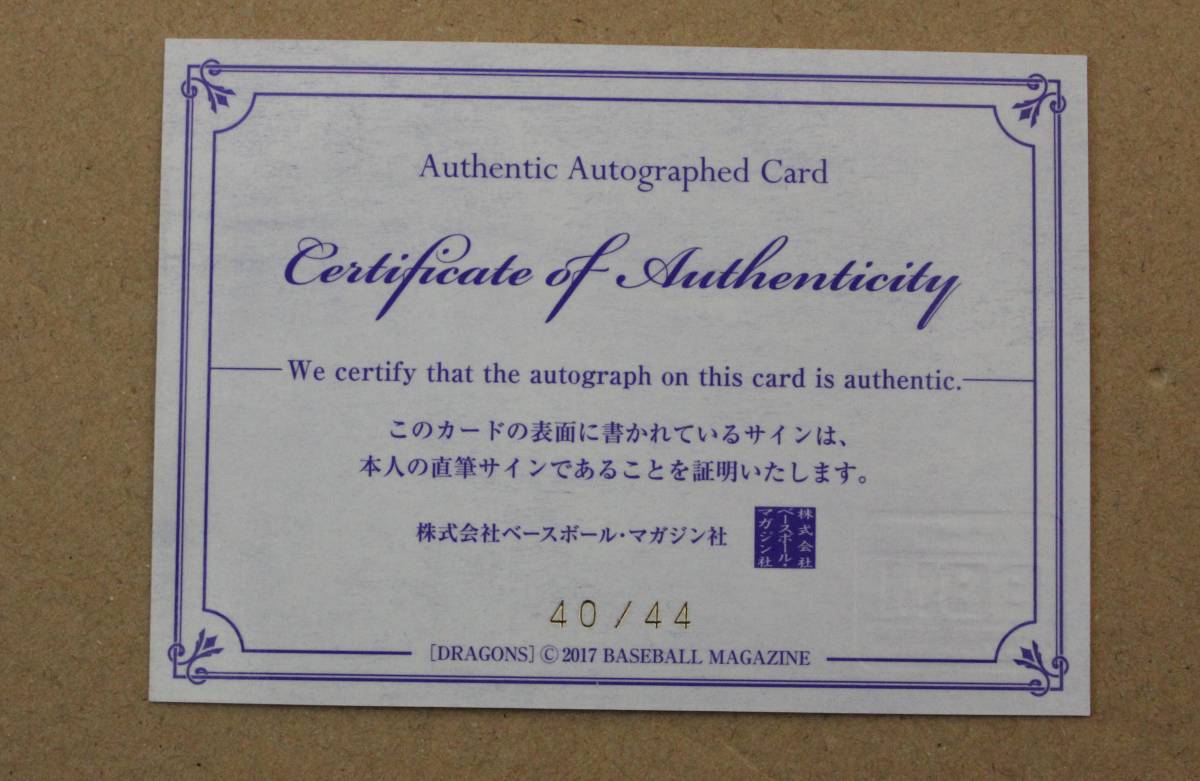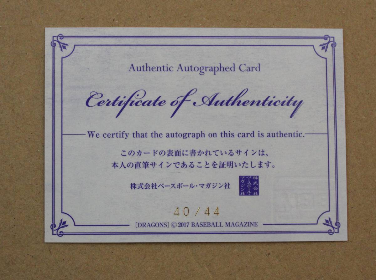 BBM2017 中日ドラゴンズ 木下拓哉 44枚限定 シリアルNo.入り 直筆サインカード
