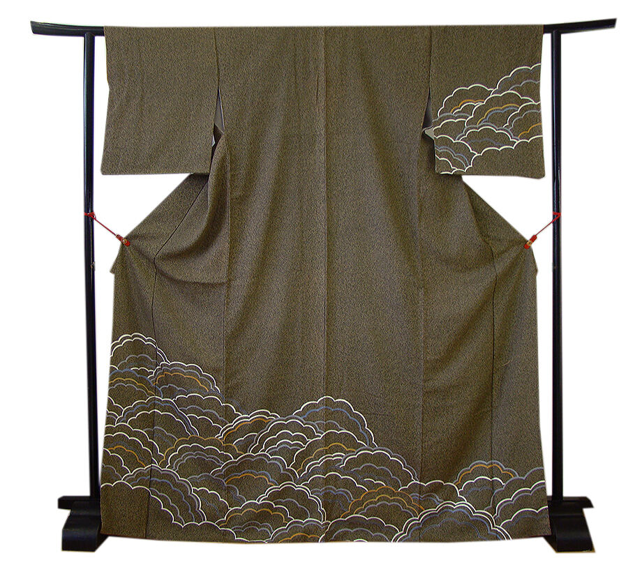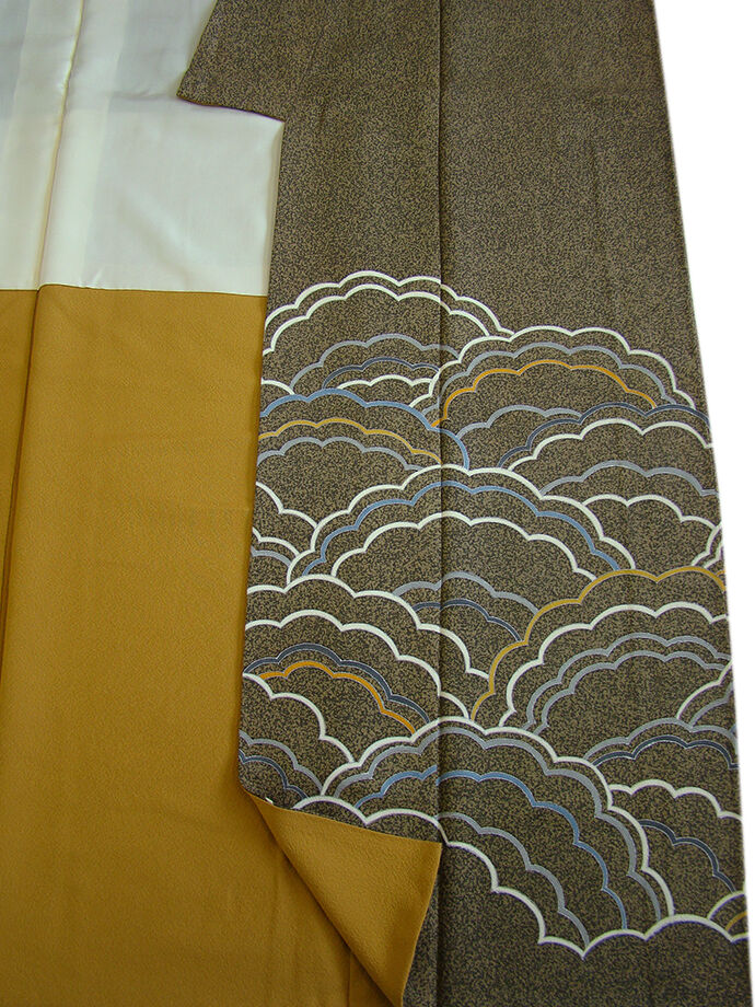 | 商品説明 | こちらのお品は「袷」でございますので、10月~5月までお召頂ければと思います。 しなやかでさらりとした柔らかな手触り良い重めの極上ちりめん地の生地、 生壁色とこげ茶色のたたき染に橙、グレー、白色等の雲取り柄の染柄、 八掛は黄土色(正絹)、幅広い年代の方にお召頂けます。 |