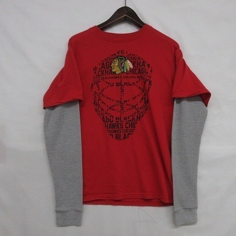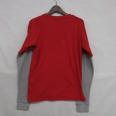 【商品タイトル】:インディアン プリント ロンT サイズ S 古着 ロングスリーブ Tシャツ レッド 袖 サーマル コットン MA2427