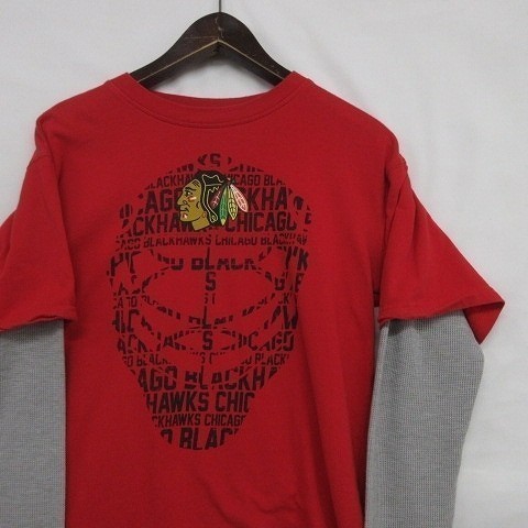 インディアン プリント ロンT サイズ S 古着 ロングスリーブ Tシャツ レッド 袖 サーマル コットン MA2427