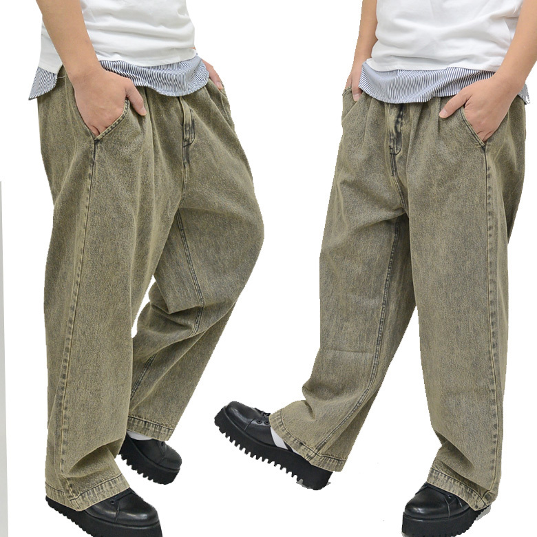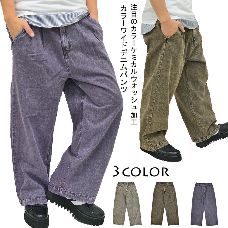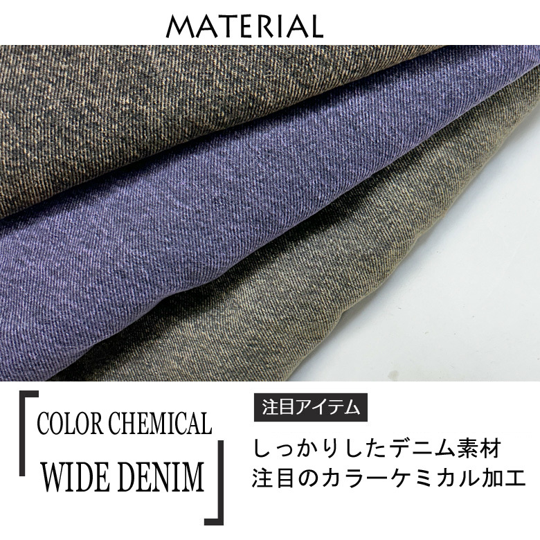 ワイドパンツ/デニムカラーパンツ/無地/ルーズパンツ/ジップフライ