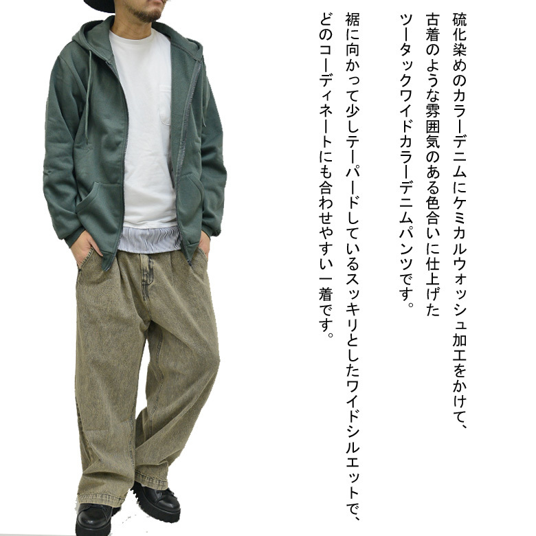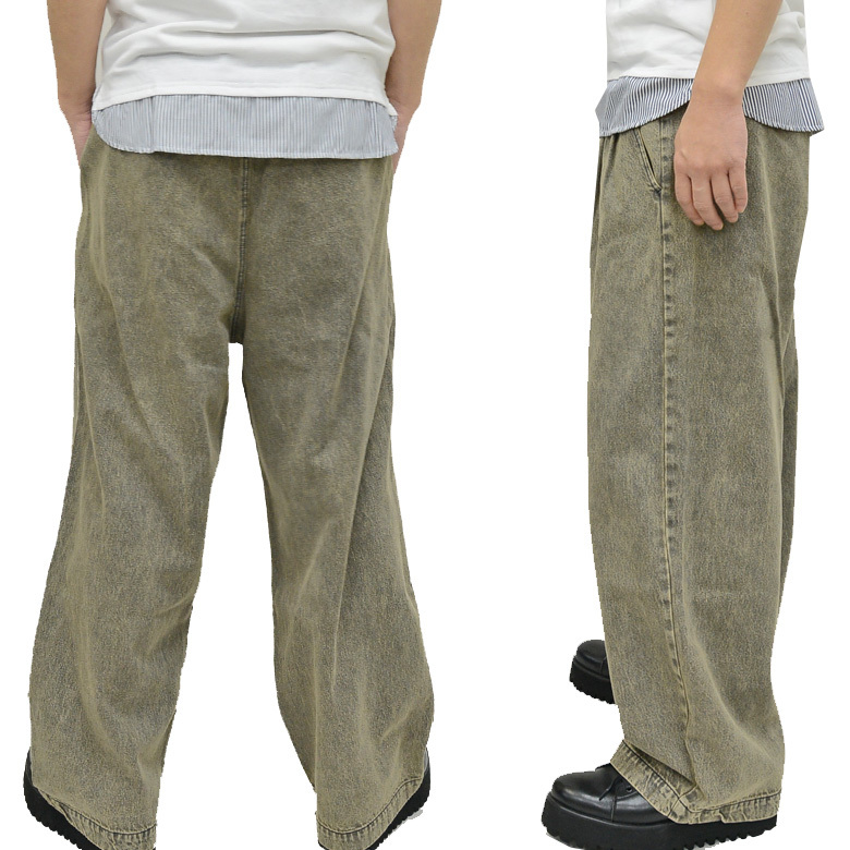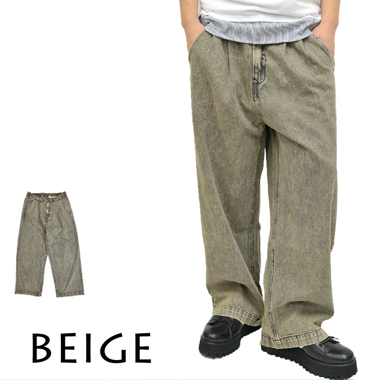 ワイド ジーンズ デニム カラーケミカル ワイド デニムパンツ 33-h364 新品ベージュ M
