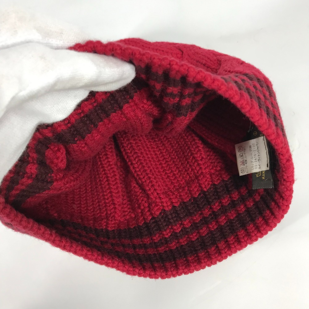 LOUIS VUITTON ルイヴィトン ボーダー ビーニー 帽子 ニット帽 ニットキャップ ニット帽 レッド レディース【中古】
