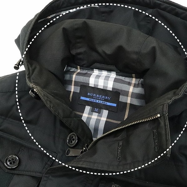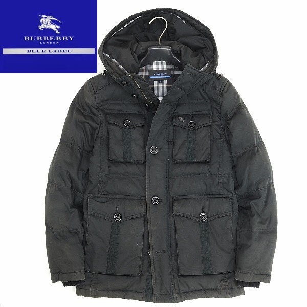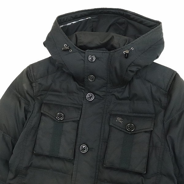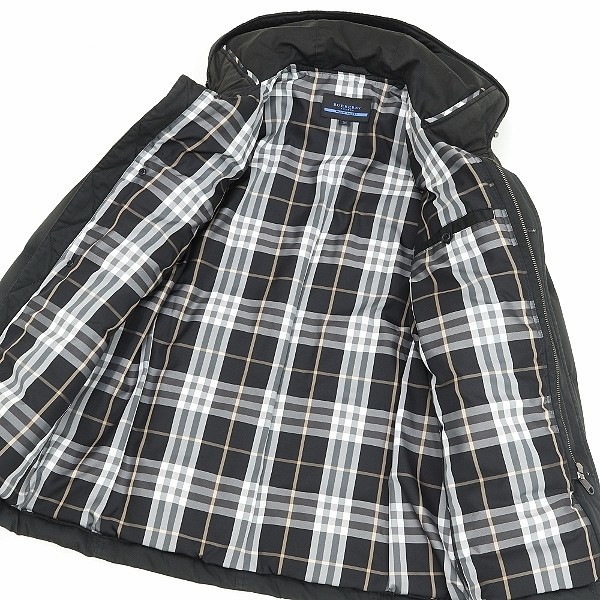 | ◆BURBERRY BLUE LABEL バーバリーブルーレーベル 裏地チェック柄 ロゴ刺繍 ダウン フーデッド ジャケット 黒 ブラック M | |