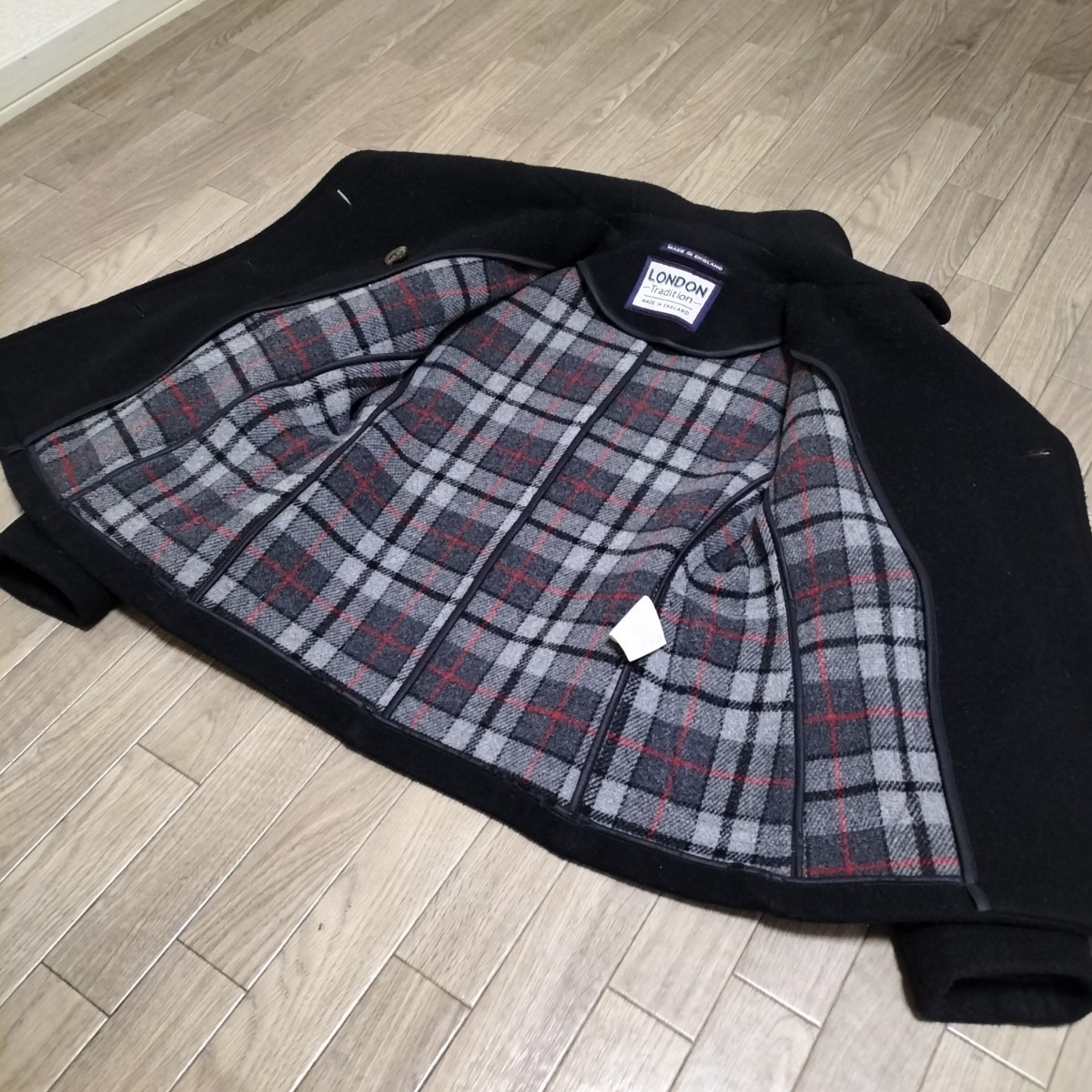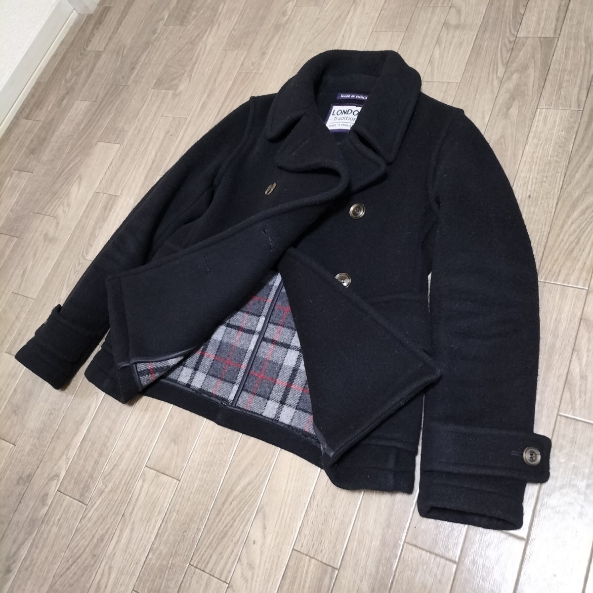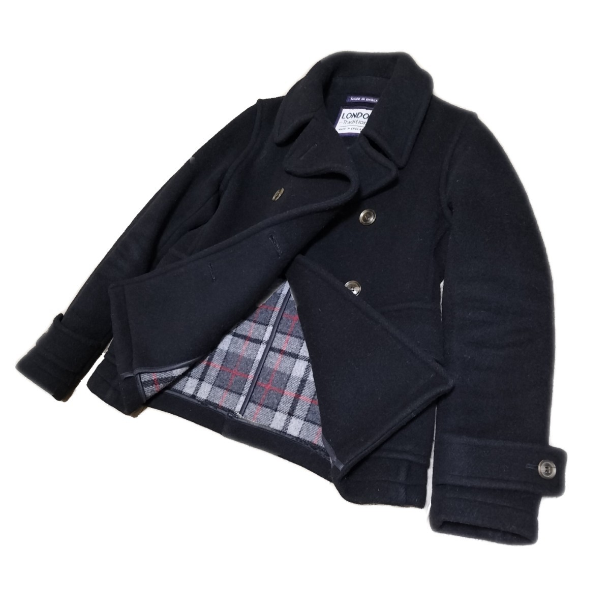 ★LONDON Tradition ピーコート ウール メルトン ジャケット サイズ34 アウター 黒 グレー チェック柄 ロンドントラディション イングランド製 8B P-COAT ブランド古着 USED