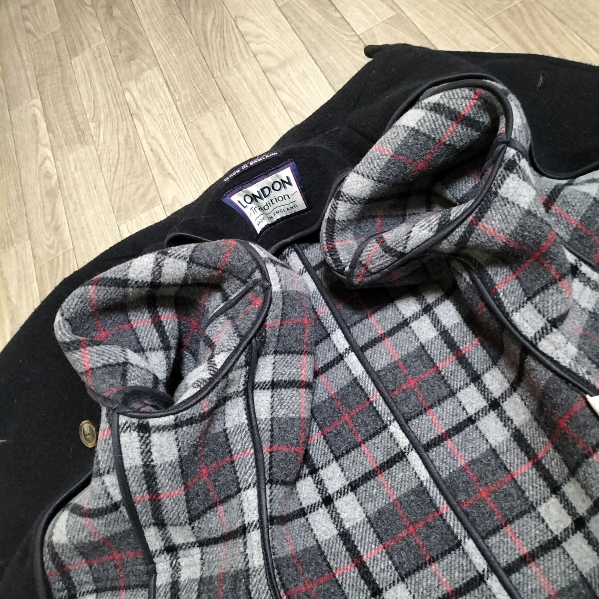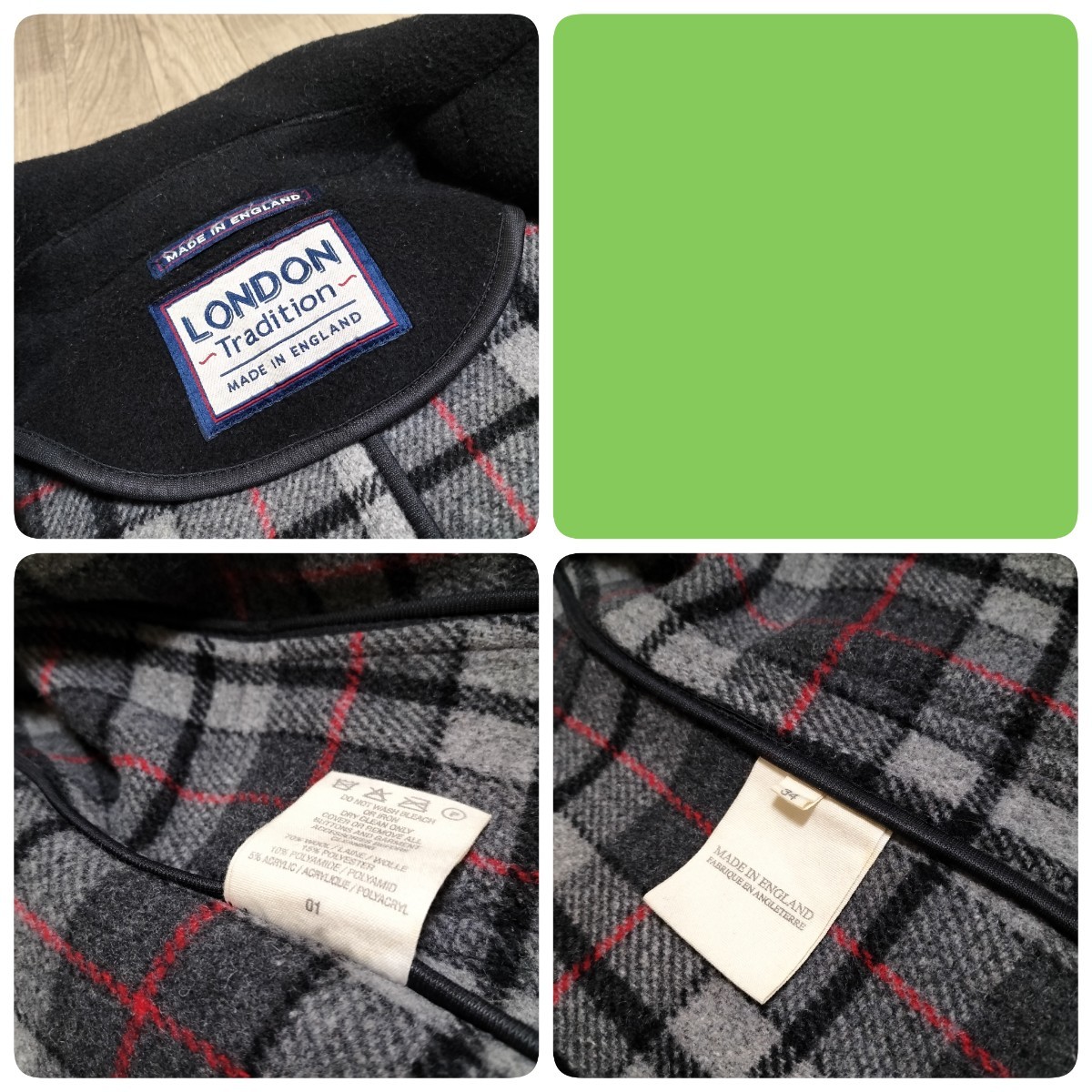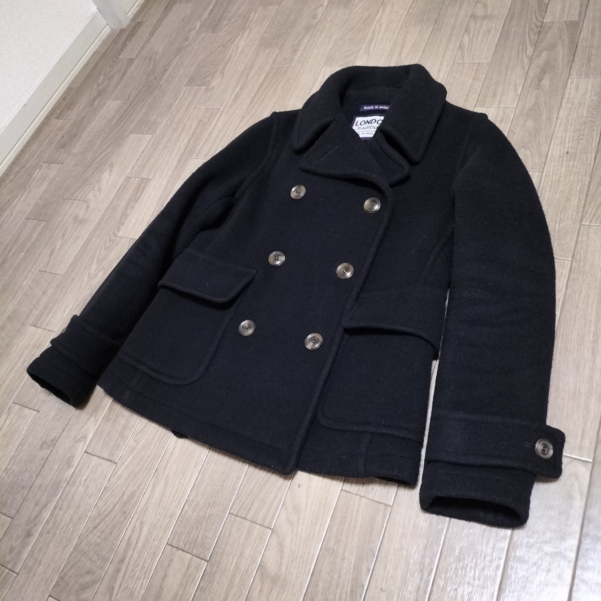 ★LONDON Tradition ピーコート ウール メルトン ジャケット サイズ34 アウター 黒 グレー チェック柄 ロンドントラディション イングランド製 8B P-COAT ブランド古着 USED