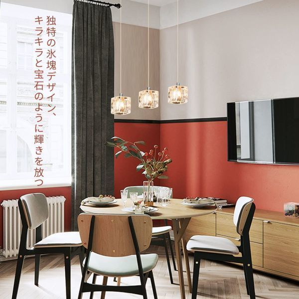 OTD ガラスペンダントライト キューブ 氷塊デザイン 工事不要 3灯セット ダクトレール式