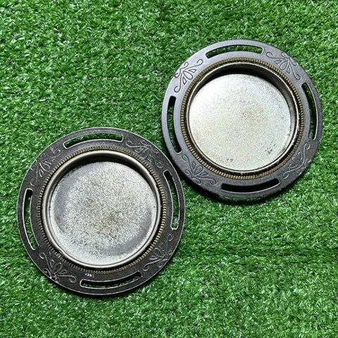 【T-32】 襖 引き手 黒 透かし 柄入り 2枚 現状品