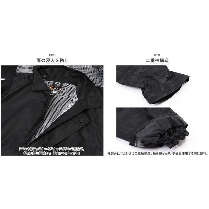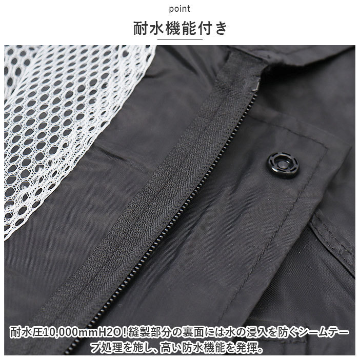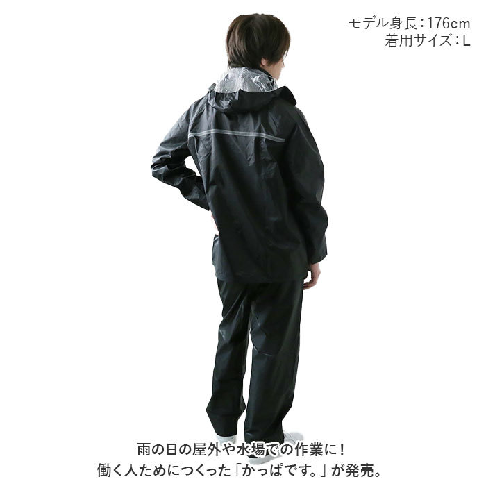 商品説明 | ・・雨の日の屋外や水場での作業に!働く人ためにつくった「かっぱです。」が発売。 ・【耐水機能付き】 ・耐水圧10,000mmH2O!縫製部分の裏面には水の浸入を防ぐシームテープ処理を施し、高い防水機能を発揮。 ・【メッシュ仕様】 ・裏地はムレやべたつきを防ぎ、サラッとした着心地のメッシュ仕様で快適な着心地。 ・《ジャケット》 ・【雨の浸入を防止】 ・フロントはファスナー&スナップボタンの前立て。裾には絞り紐付きで、雨をシャットアウト! ・【二重袖構造】 ・袖部分はゴム付きの二重袖構造。袖を捲ったり、手袋を使用する時に便利。 ・【透明窓付き】 ・フードのツバ部分には透明窓が付いているので、視界を遮る心配なし! ・スナップボタンで取り外しOK。 ・【ポケット付き】 ・フラップ付きの胸ポケットはカギやペンなど入れても落としにくく安心。 ・【リフレクター付き】 ・背面には視認性を高めてくれるリフレクター付き。 ・《パンツ》 ・【ストレスフリー設計】 ・締めつけ感のないウエストは優しくフィットし、ストレスフリーな着用感。 ・【ユニセックスデザイン】 ・ユニセックスで使えるシンプルなデザイン。屋外での作業はもちろん通勤や通学、アウトドアシーンなど様々なシーンで活躍! |