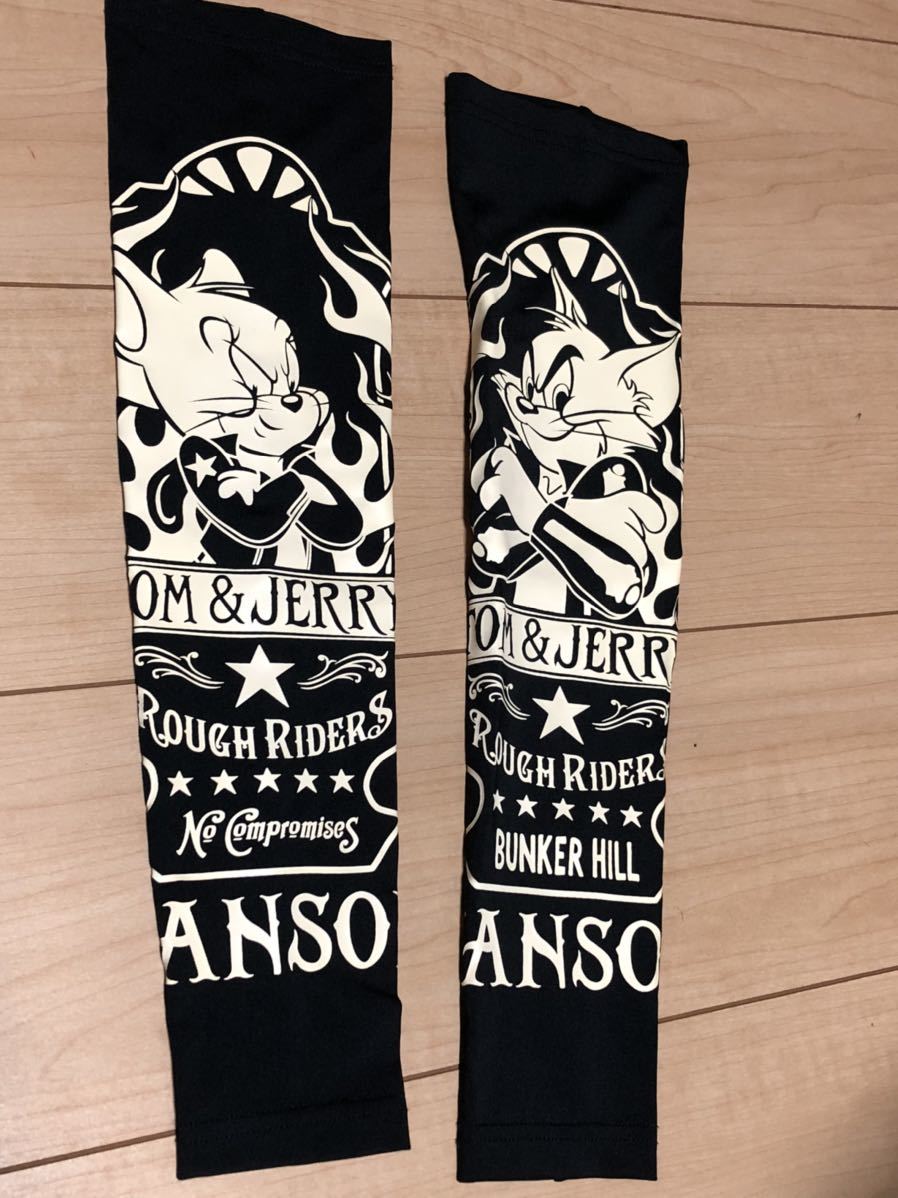 vansonとトムとジェリーのコラボした腕カバーです。中古ですが目立つ汚れはないです。発送方法任せていただければ即決のみ送料込みに致します。
