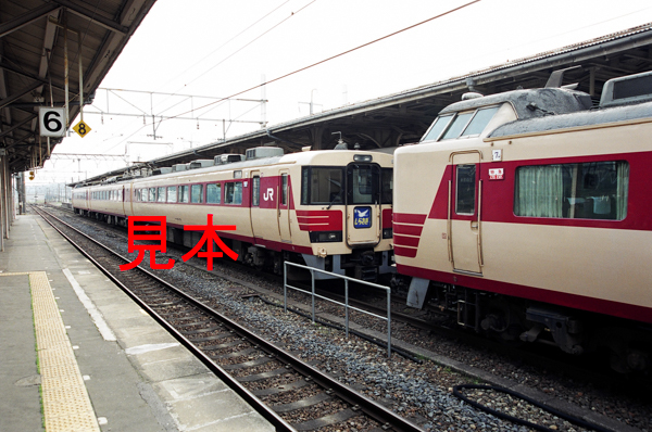 鉄道写真、35ミリネガデータ、114597640019、485系クモハ200、特急しらさぎ(後部)、JR東海道本線、米原駅、1999.05.09、(3100×2055)