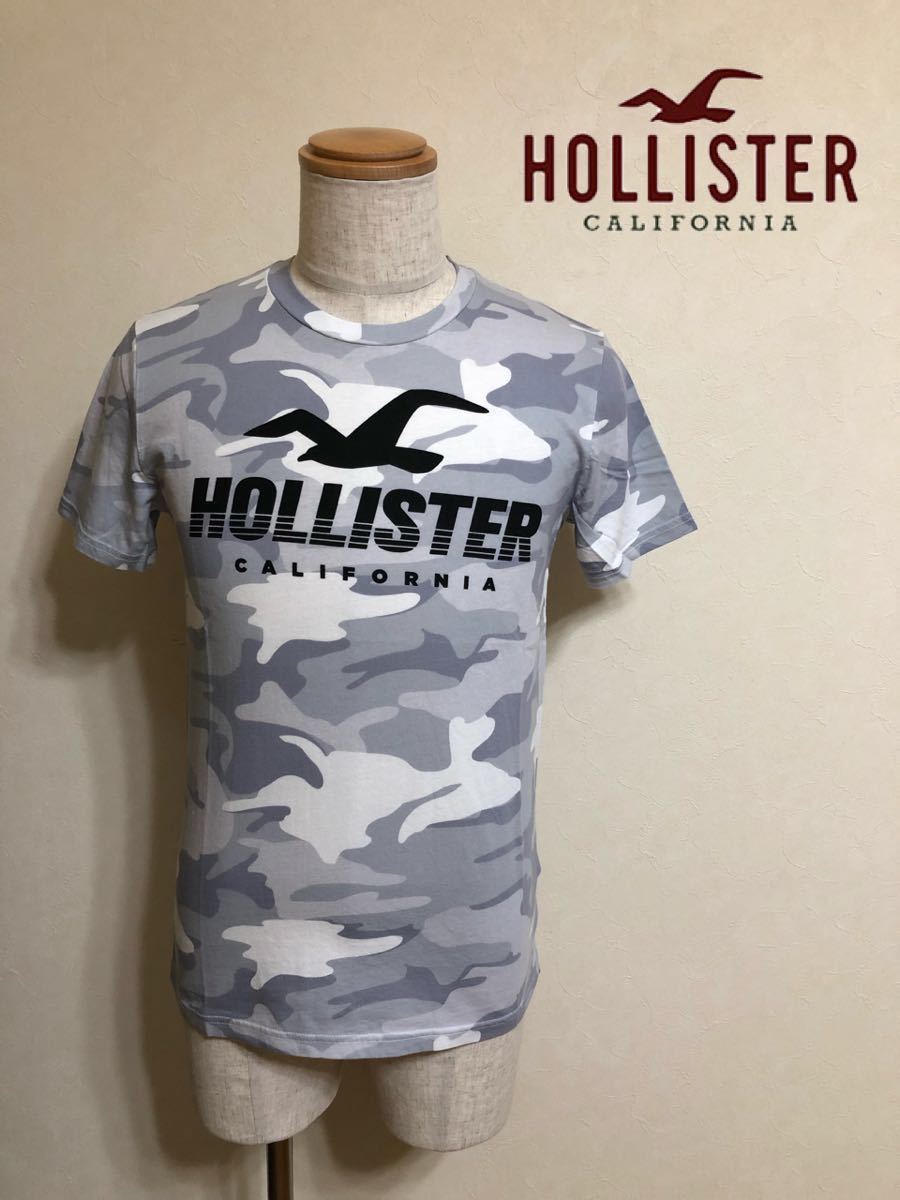 【新品】 HOLLISTER ホリスター カモロゴグラフィック Tシャツ ビッグロゴ サイズXS 170/84A 半袖 ホワイトカモフラージュ柄 633307563