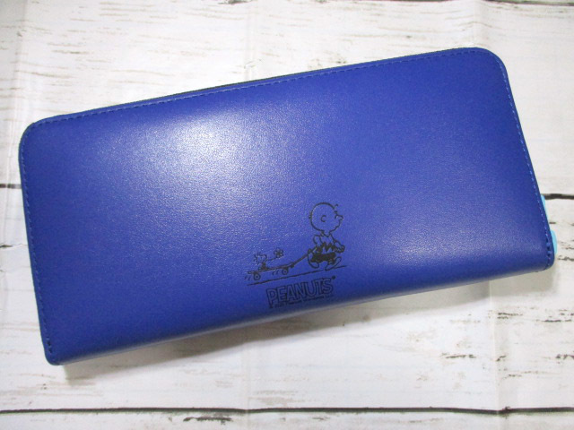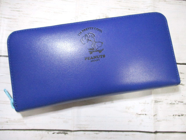 格安 新品 財布 レディース メンズ 長財布 ラウンド スヌーピー SNOOPY 本革 カラフルなPOPなデザイン ブルー