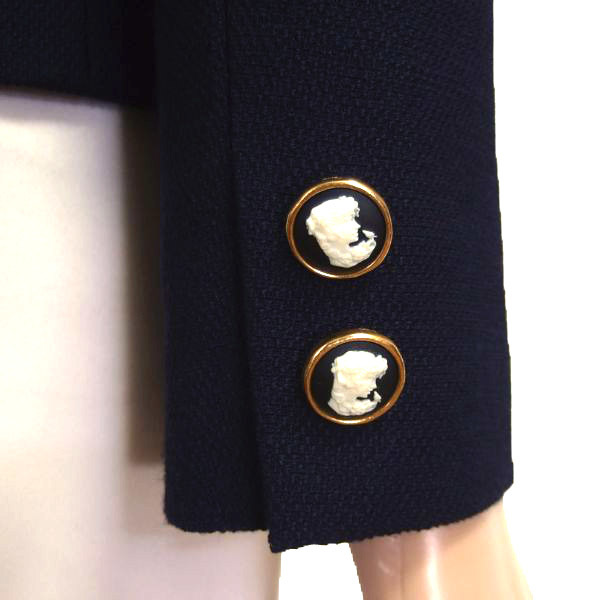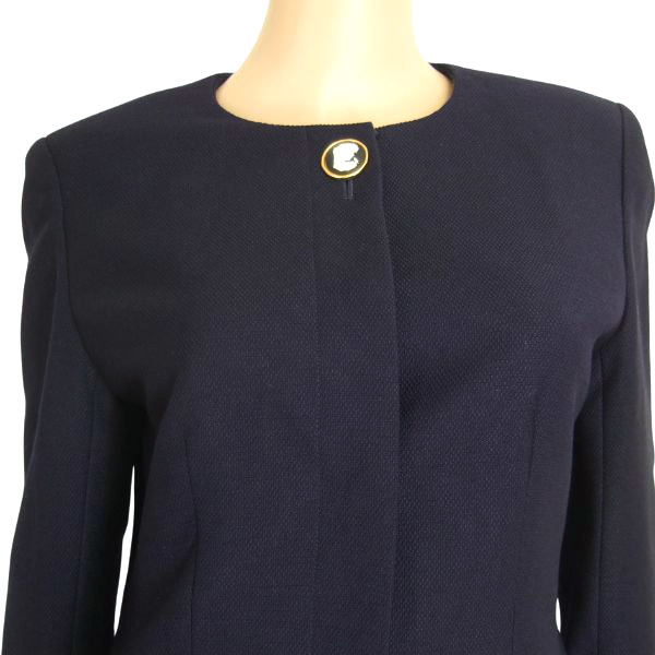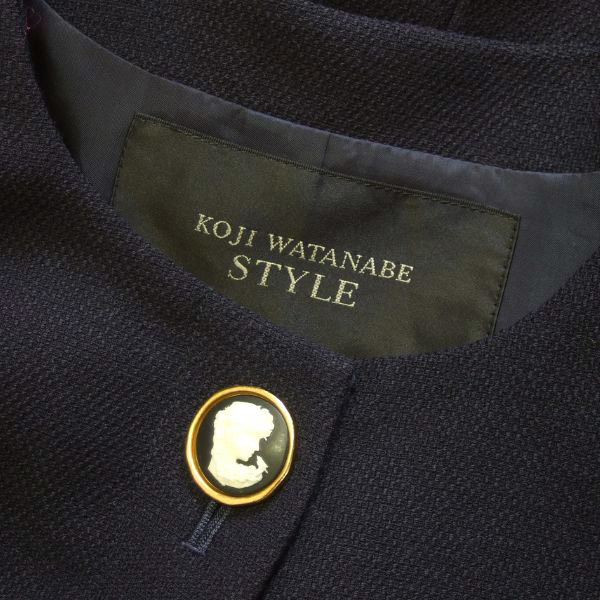 商品詳細 | NO-M5938 ★【ブランド】 * KOJI WATANABE STYLE (株)東京スタイル ★【特徴】 * しっかりとした生地感の上質ウール100%素材、大人な雰囲気を演出する上品なノーカラージャケットです。 フロントトップと袖口のお洒落なアンティークボタンがアクセント。 シンプルデザインの中に大人女性らしさを魅せてくれます。 飾らないシンプルデザインで通勤・オフィス、お食事会などシーンを選ばずお召し頂けます。 フロント4ヶ&スナップボタン2ヶボタン留め仕様。 比翼仕立ですっきりとした印象です。 きちんと感のある美形ノーカラージャケット、この機会に是非いかがでしょうか♪ ・肩パット○ ・裏地○ ・伸縮性○ ・ポケット× ・季節性 春秋冬向け ※状態につきましては当社基準のランク表も合わせてご参考下さい。 | ||||||||||