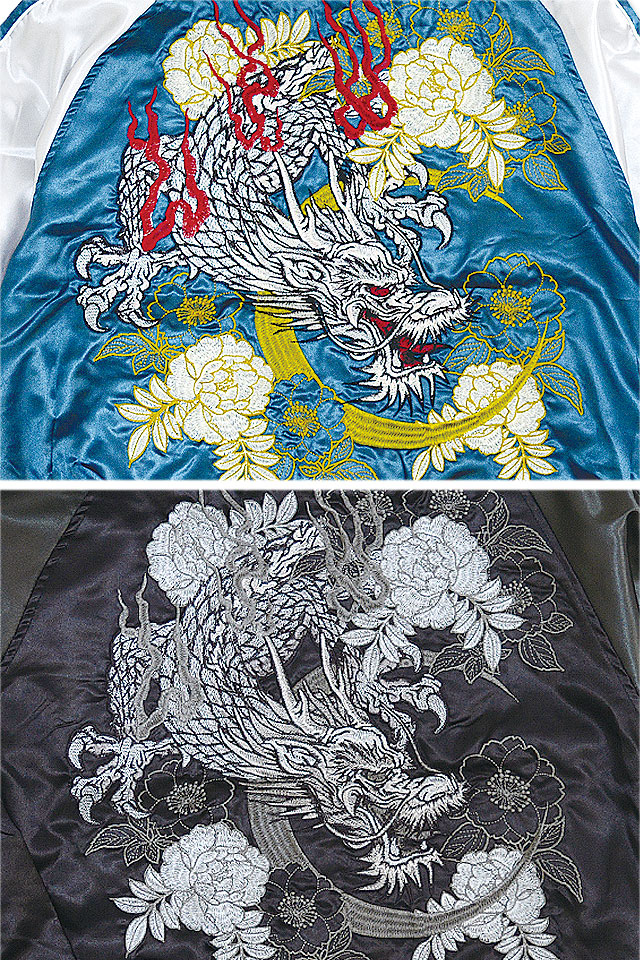 刺繍に定評のある古舗ブランド、華鳥風月の姉妹ブランド「朧」から「龍スカジャン(9022812)」のご紹介です! カジュアルなポリエステル生地を使用し、気軽にお楽しみ頂くことの出来るスカジャンを製作しました。 今回、モチーフの主役に採用されたのは、根強い人気を誇る【龍】柄。 1枚持っているだけでずっと使えるアイテムです。 | ||||||||||||||||||||