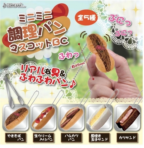 ミニミニ調理パンマスコットBC【全5種セット】やきそばパン/生クリーム入りパン/ハムカツパン/厚焼き玉子サンド/カツサンド◆スクイーズ