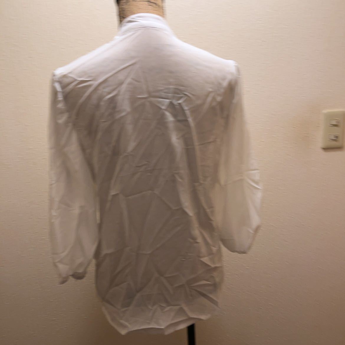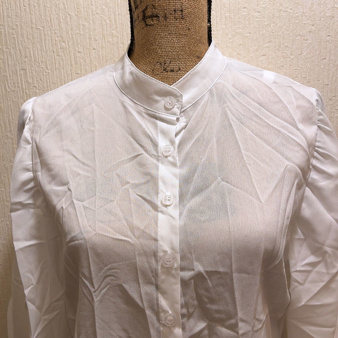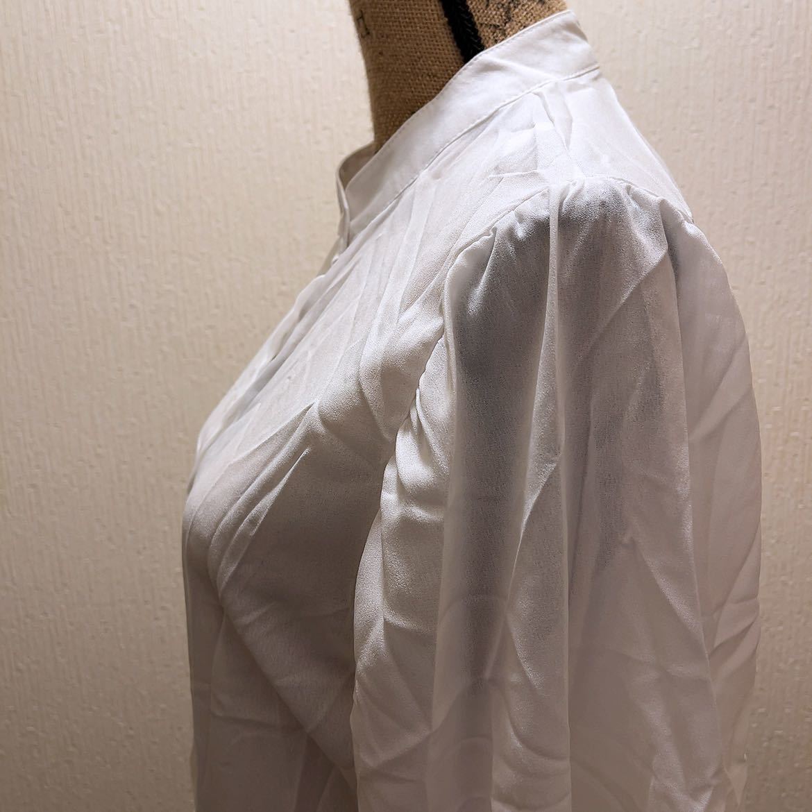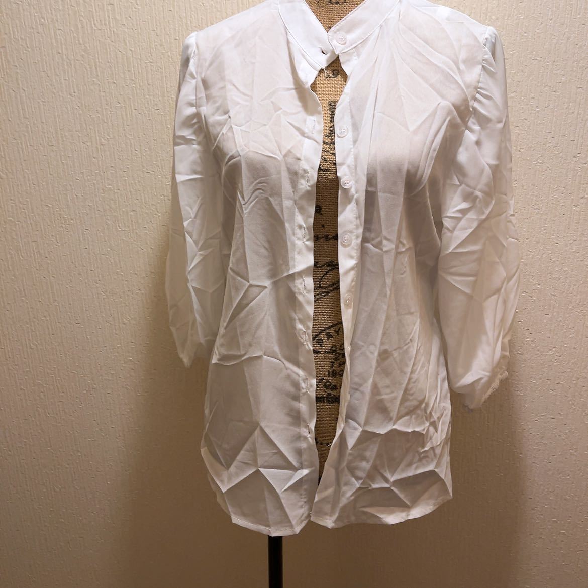 【商品名】新品★ホワイトシンプルブラウス★ノーカラー★L