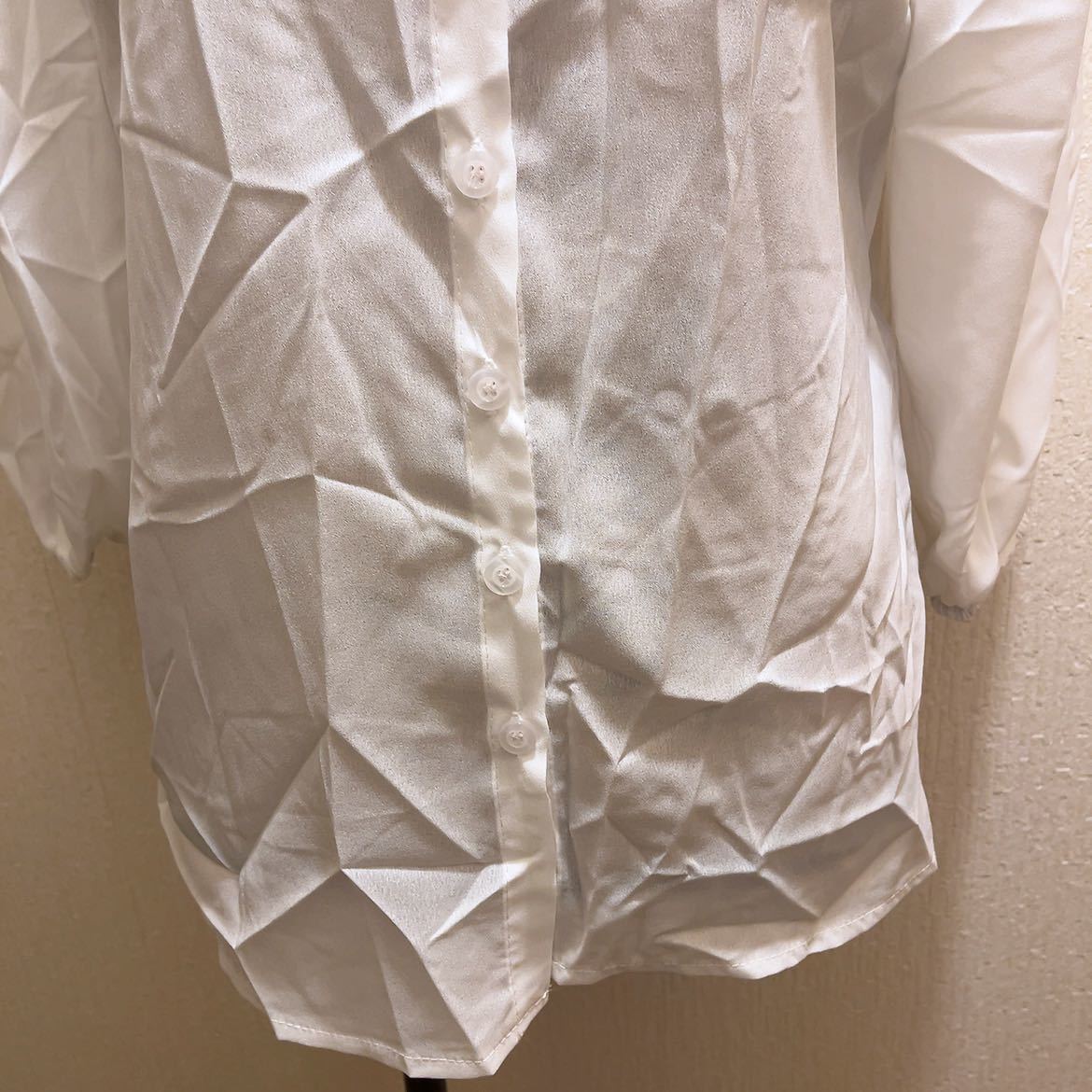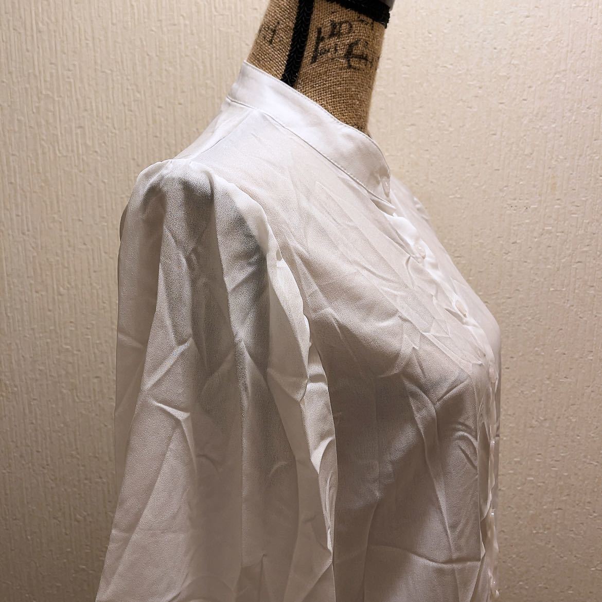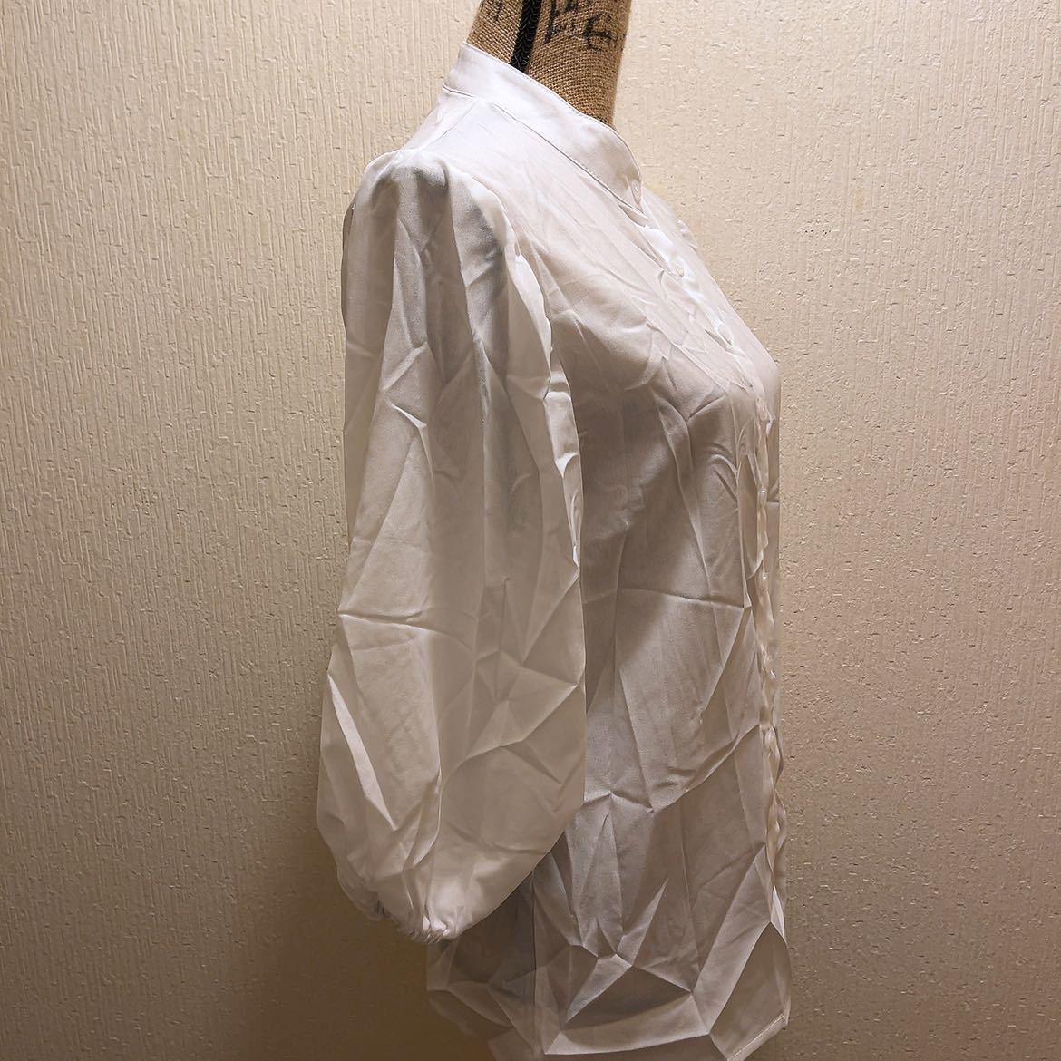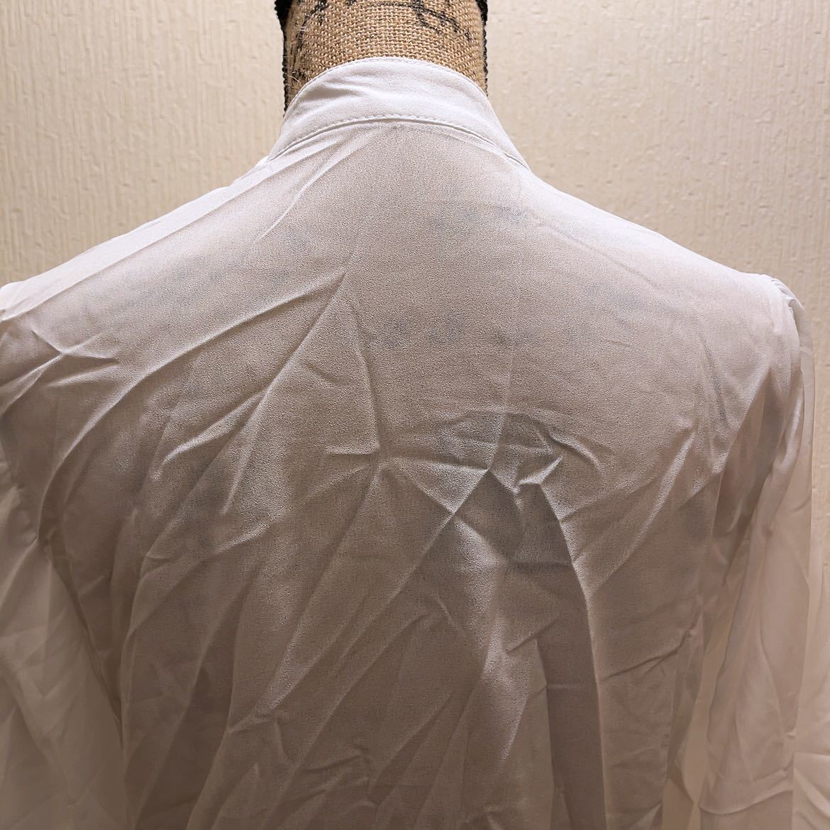 【商品名】新品★ホワイトシンプルブラウス★ノーカラー★L