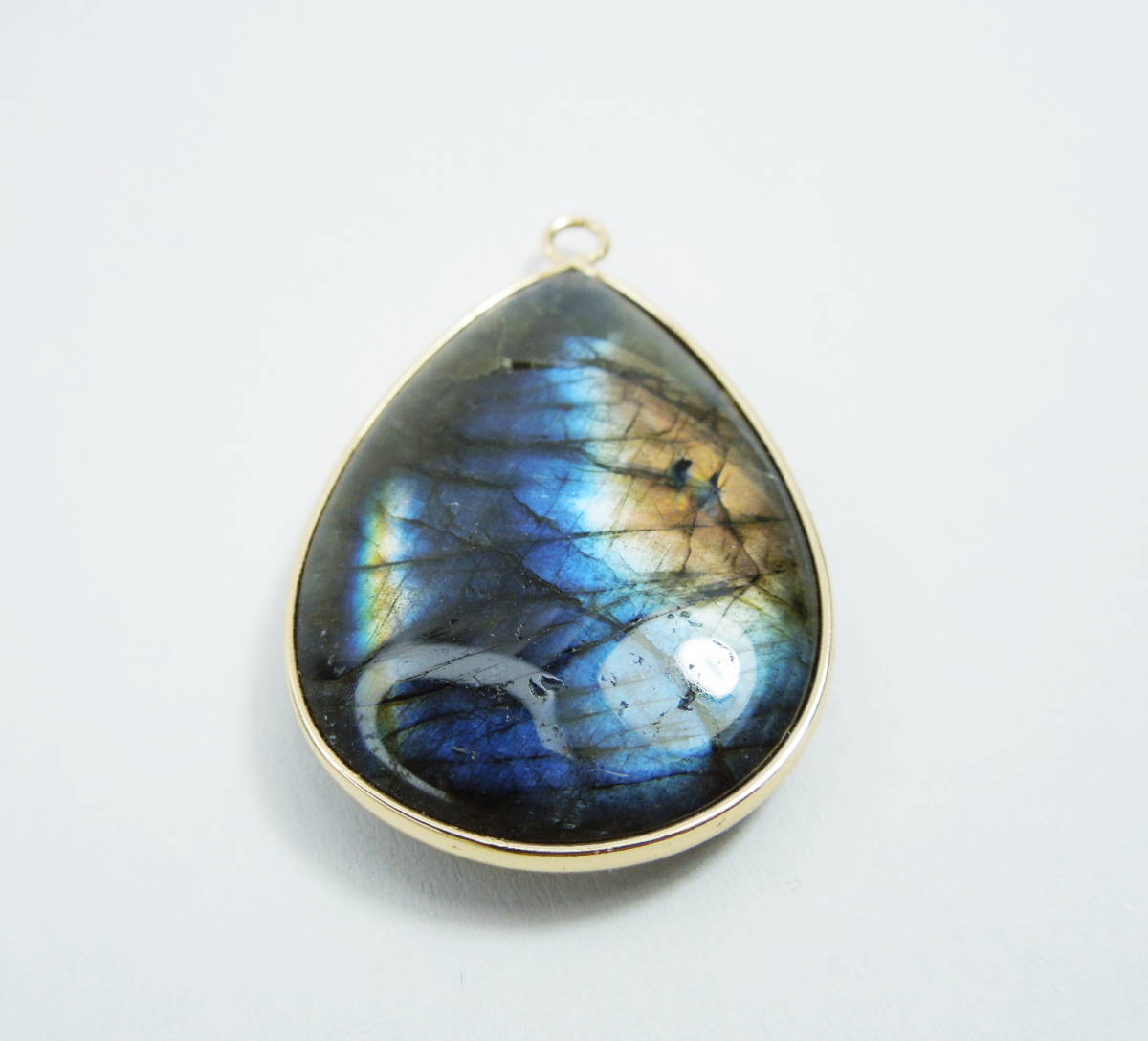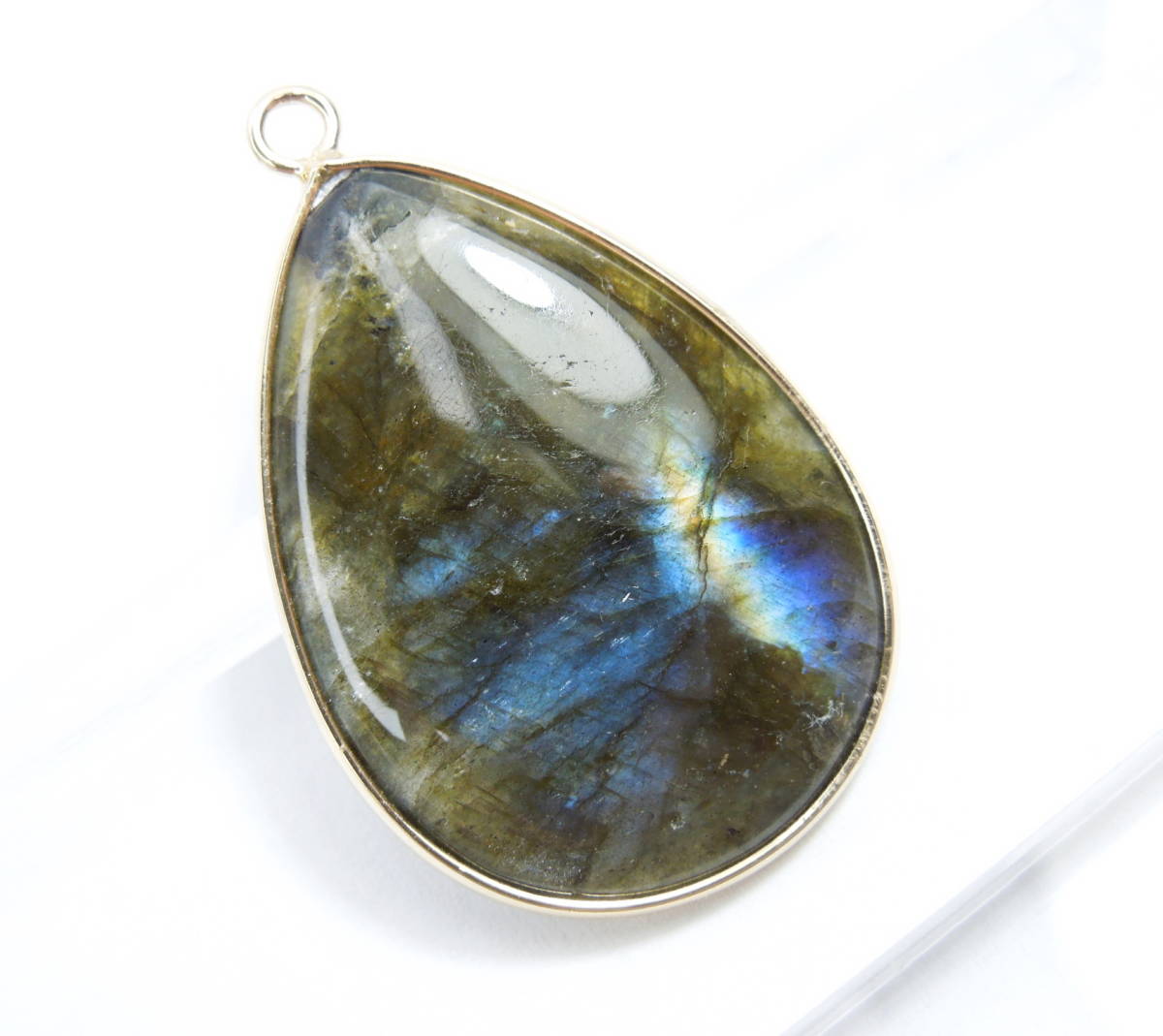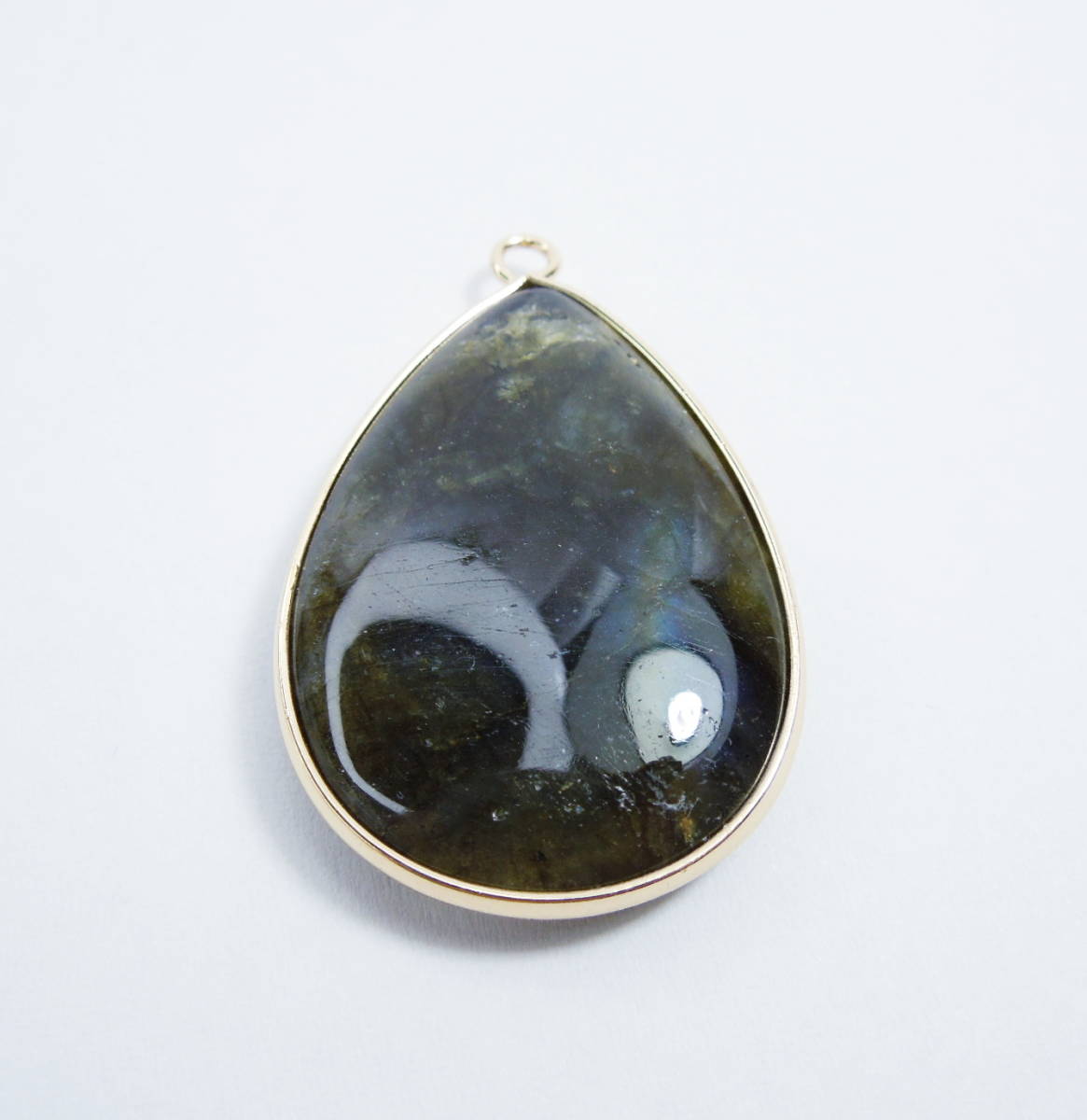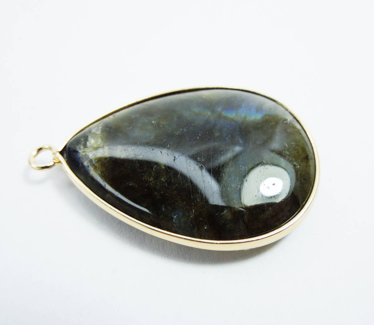 天然石 ラブラドライト ペンダントトップ 新品 曹灰長石 ドロップペンダント ラブラドル長石 トップのみチェーン無し クラック有り