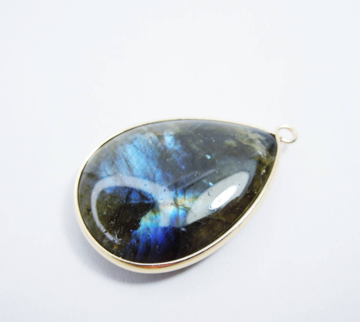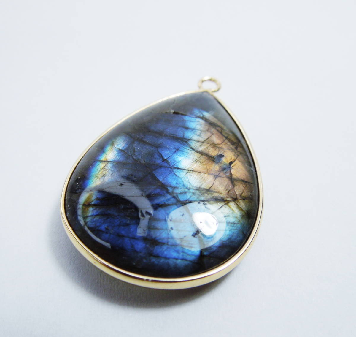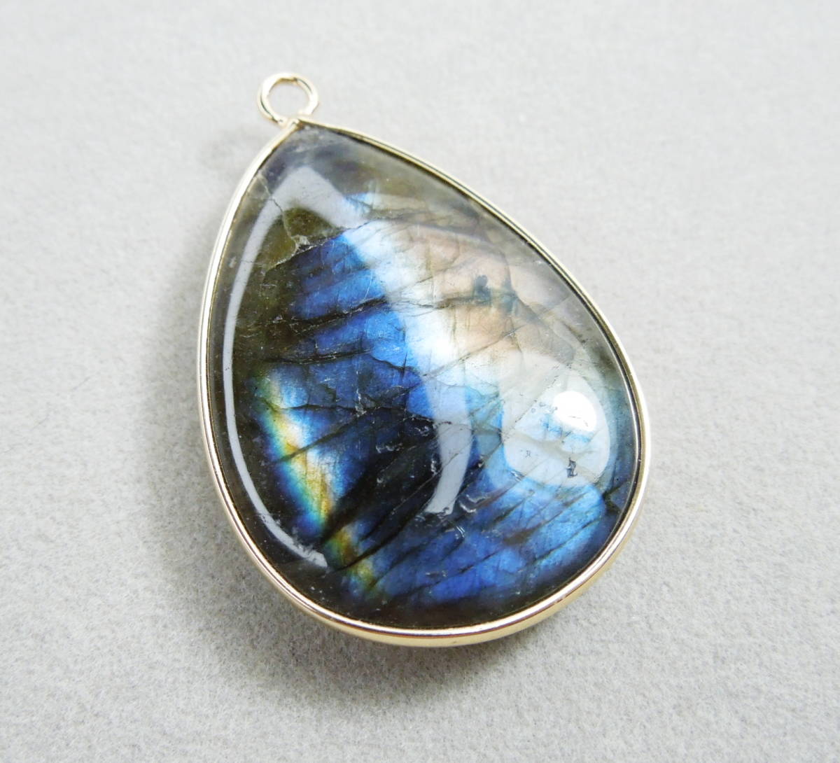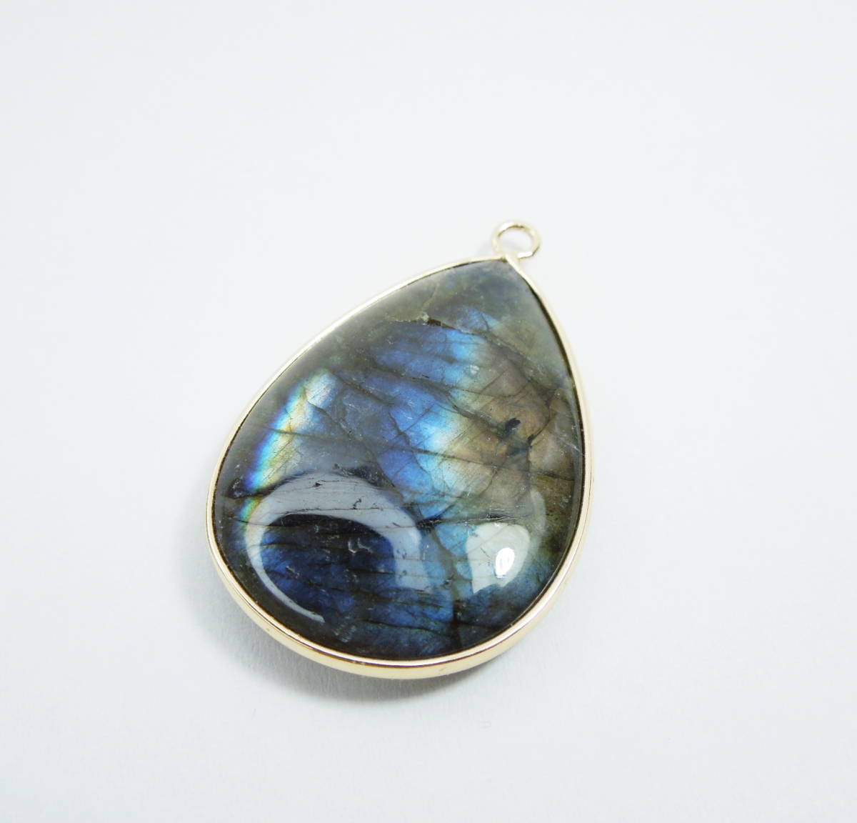天然石 ラブラドライト ペンダントトップ 新品 曹灰長石 ドロップペンダント ラブラドル長石 トップのみチェーン無し クラック有り